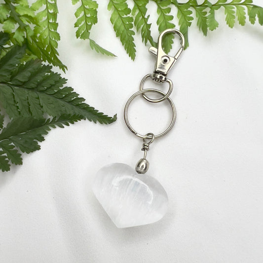 Selenite Heart Crystal Keychain Charm | Cleansing ∙ Protective ∙ Dispels Negativity