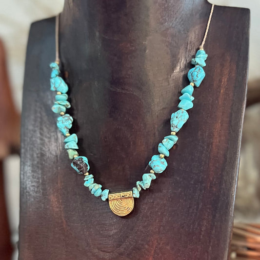 Amazonite & Dyed Agate with Brass charm Layer Crystal Necklace: