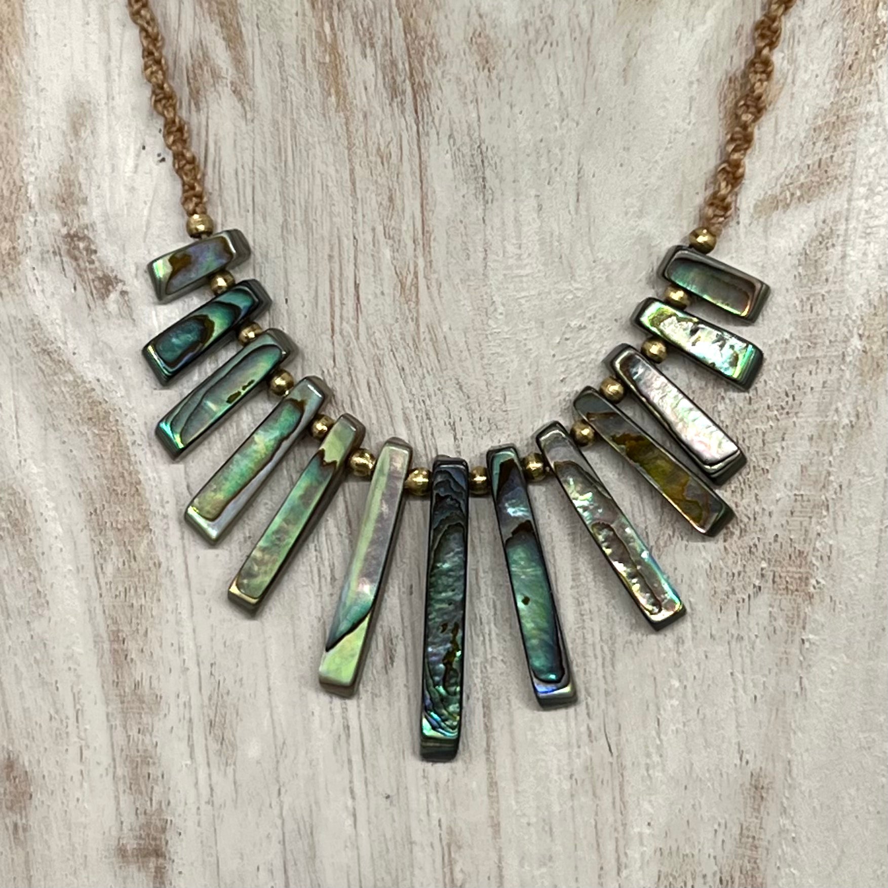 ‘Mer Dreams’ Abalone Shell Micro Macrame Necklace