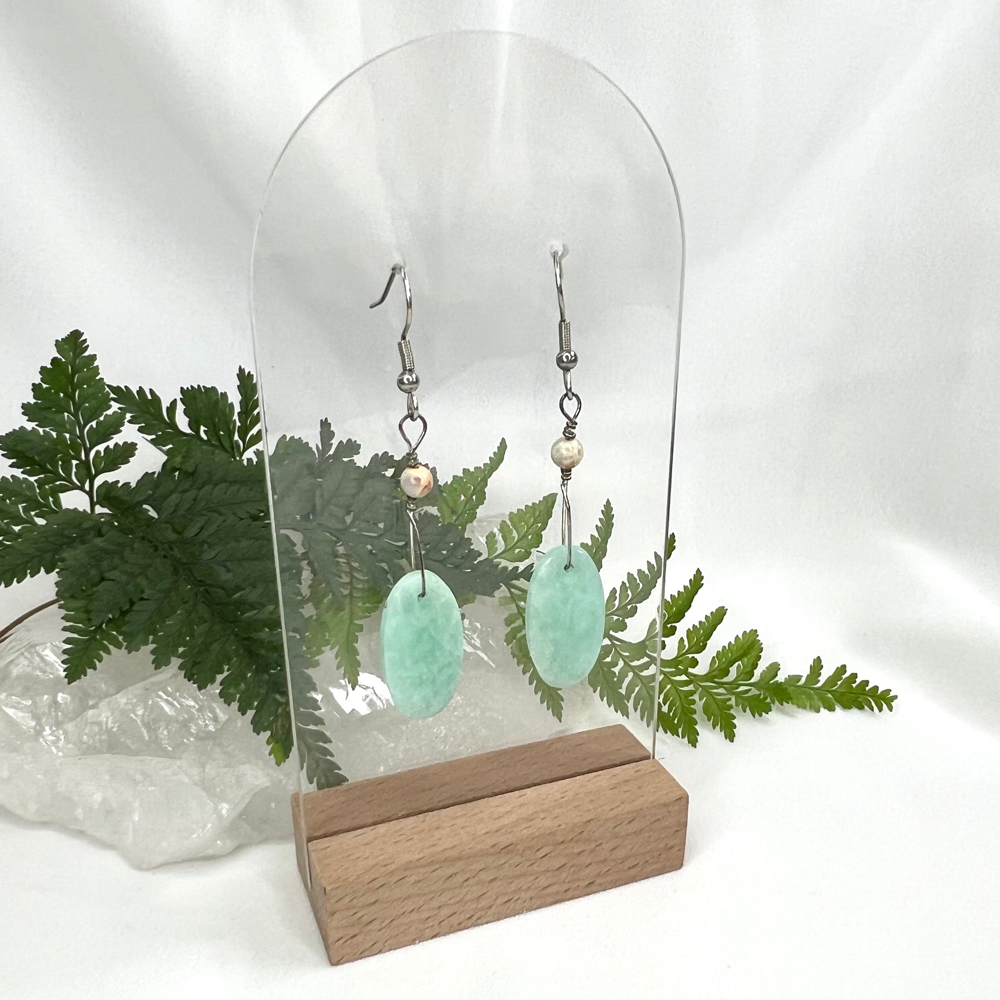 Add a pop of color and shimmer with these flashy Amazonite earrings, showcasing beautiful aqua-green tones with natural sheen. Set on hypoallergenic surgical steel hooks, they’re perfect for everyday wear—lightweight, durable, and full of vibrant energy.