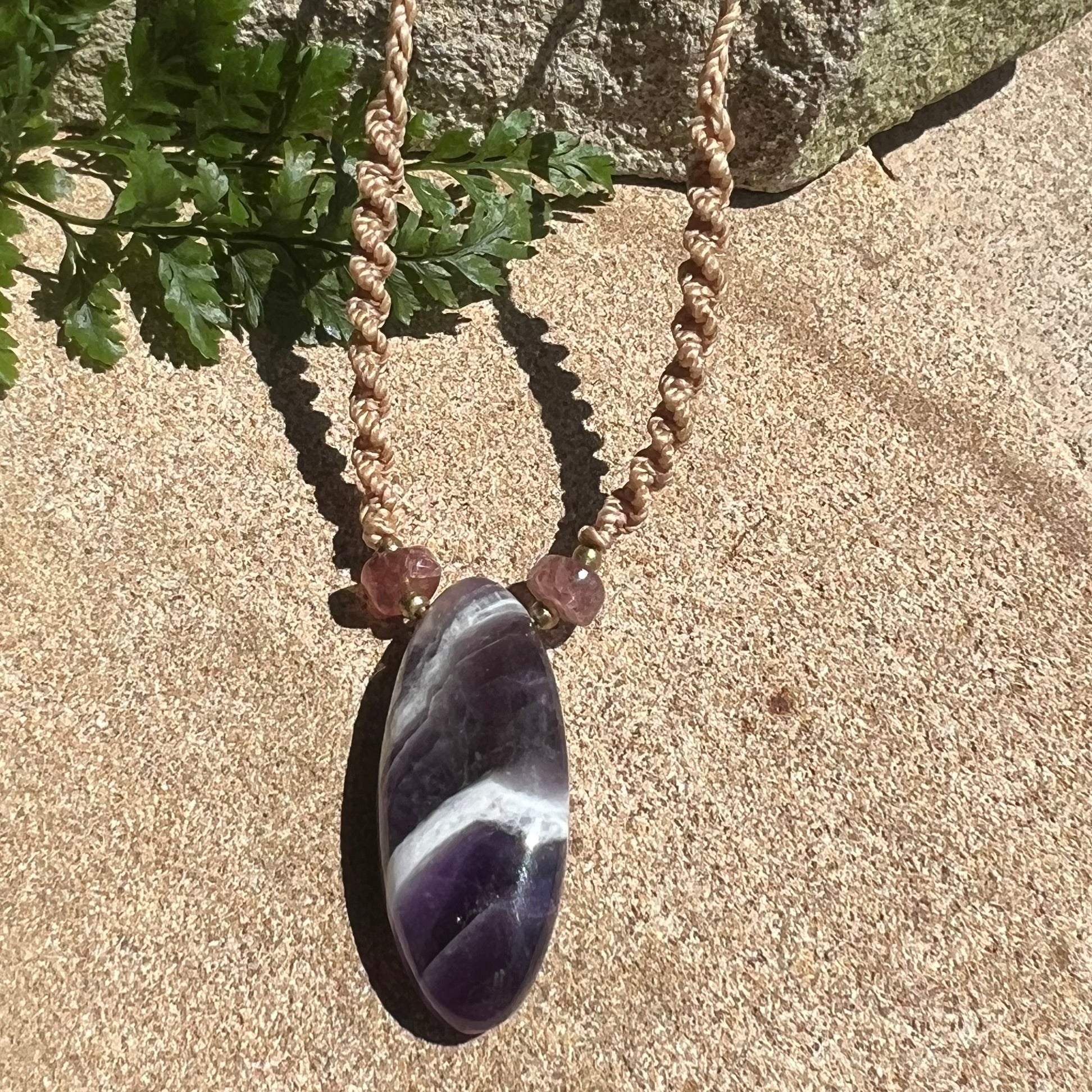 Amethyst with Strawberry Quartz Macrame Crystal Necklace