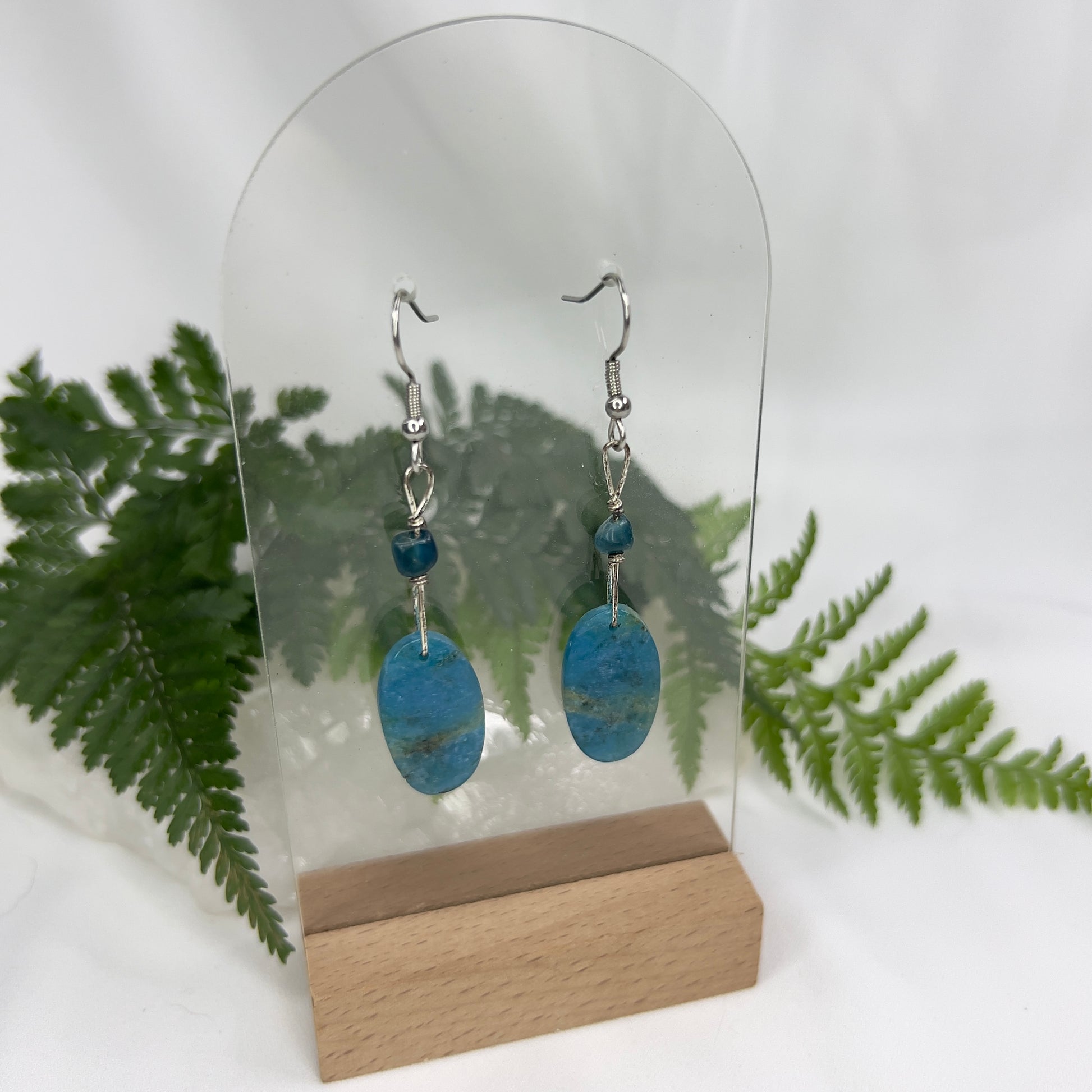 Vibrant and full of energy, these earrings feature striking Blue Apatite gemstones with rich oceanic hues and natural shimmer. Set on hypoallergenic surgical steel hooks, they’re lightweight, durable, and perfect for adding a bold pop of color to your everyday look.
