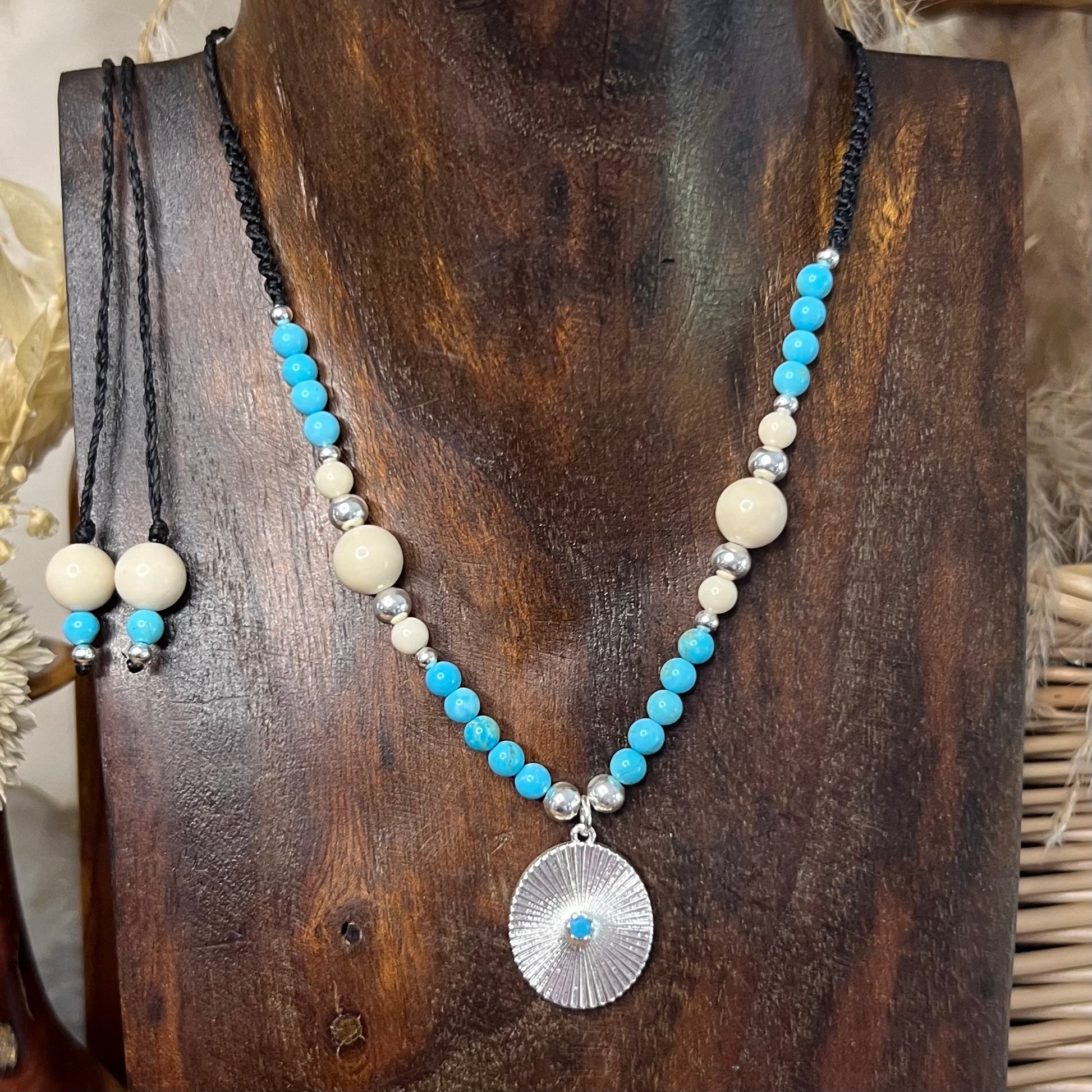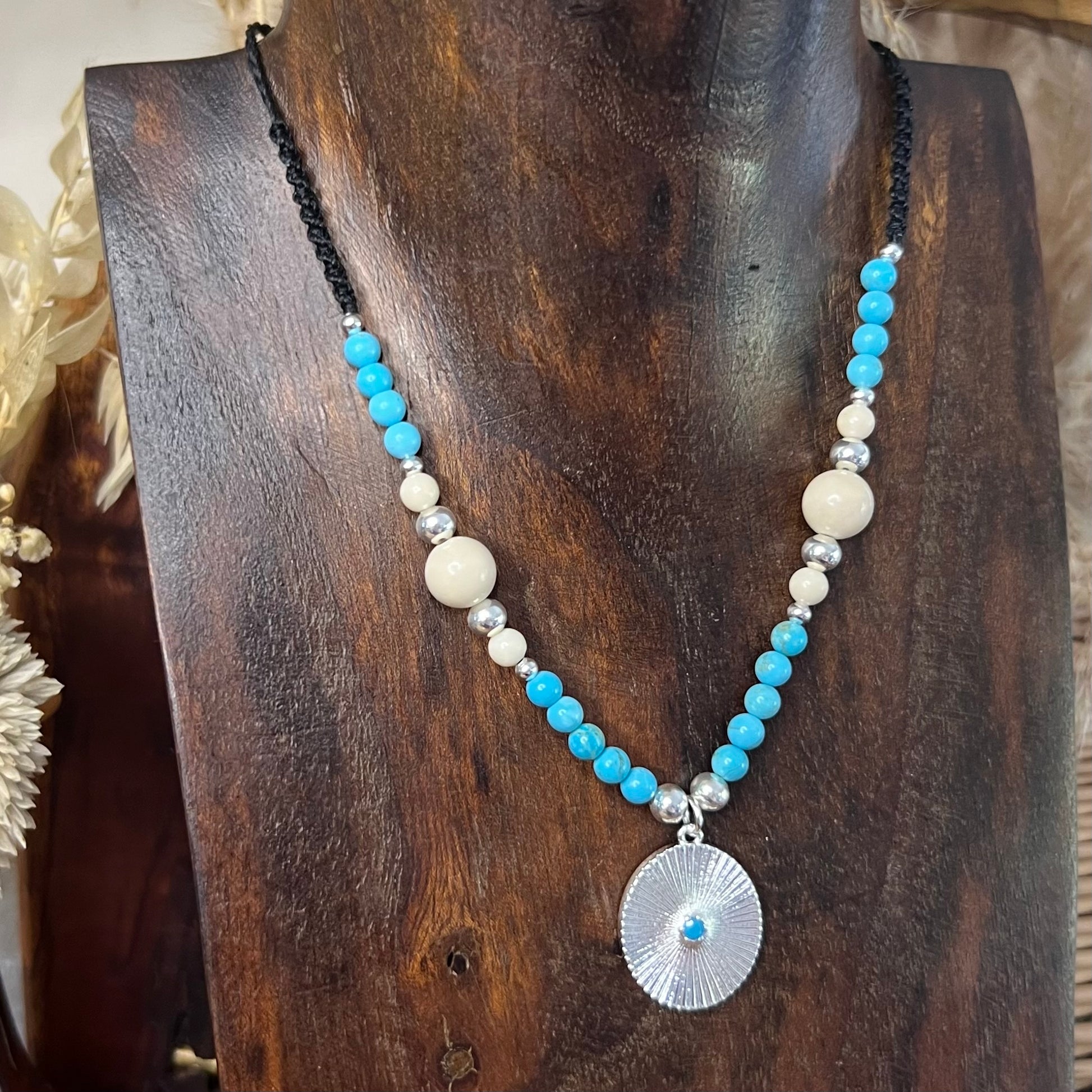 Blue Howlite & Riverstone with Silver Boho accents Crystal Necklace