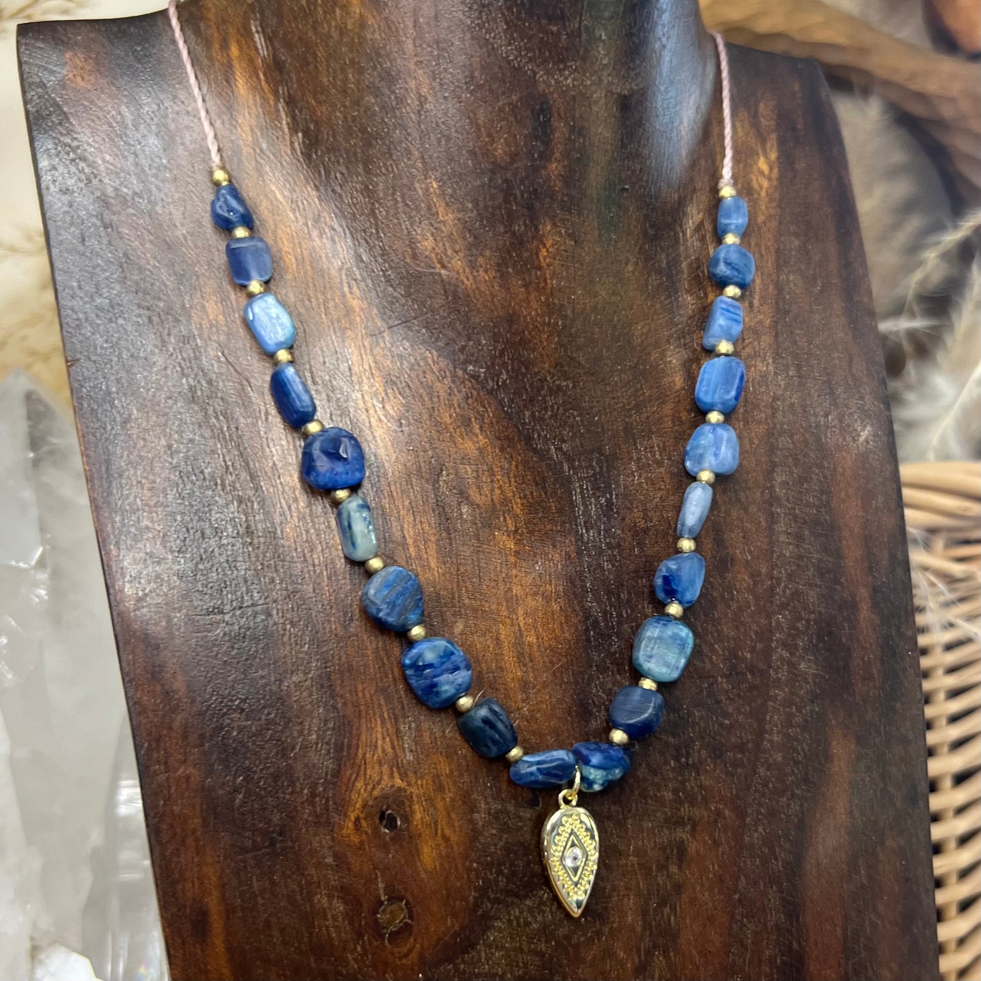 Blue Kyanite Layer Crystal Necklace: Communication with Guides | Spiritual Growth | Alignment