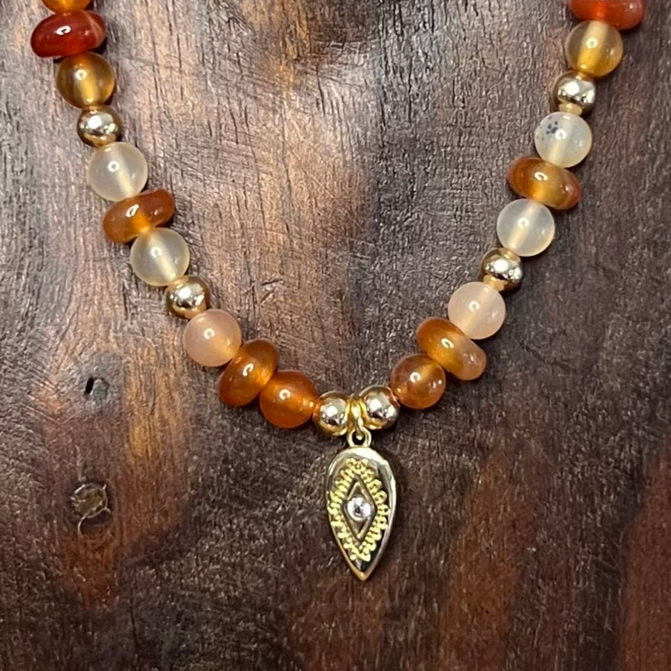 Carnelian & Persian Gulf Agate with Gold CZ Boho Accents Crystal Necklace
