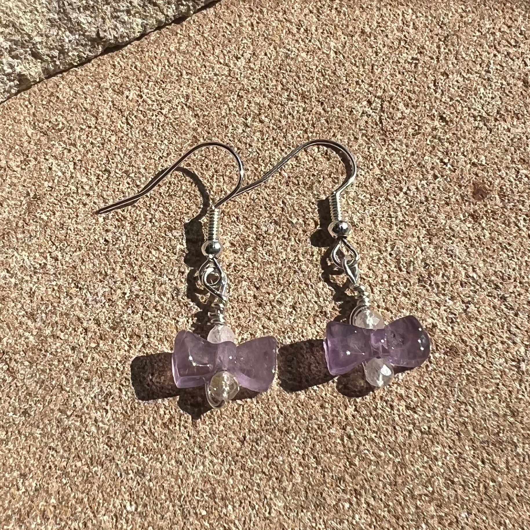 Carved Amethyst 'Ribbon Bow' Crystal Earrings: Protective ∙ Calming ∙ Purifying
