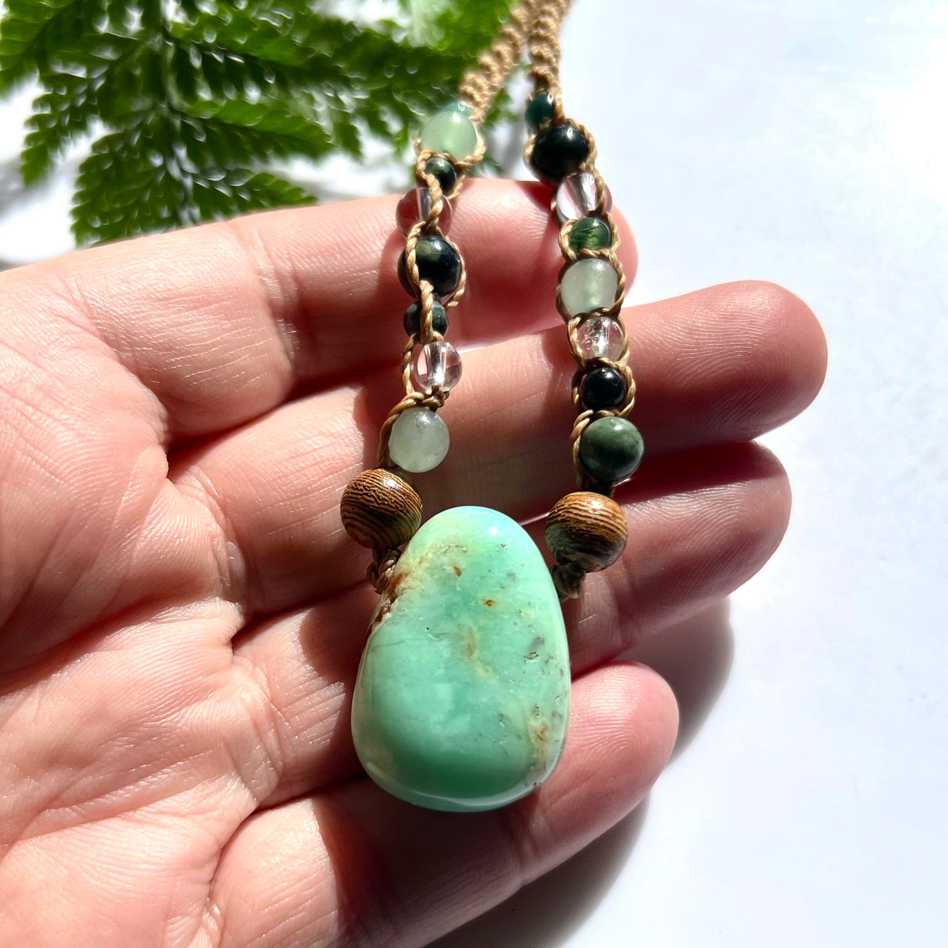 Lush Anhata heart energy has been woven into this beautiful Eclectic Necklace, featuring a gorgeous Chrysoprase pendant.