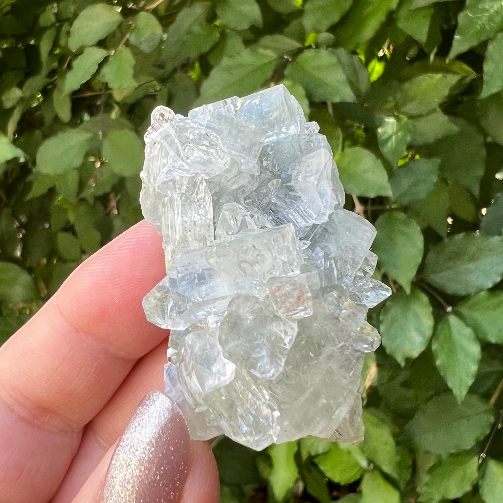 A small, sweet cluster specimen of Clear Apophyllite points on a solid matrix.Ā Ā