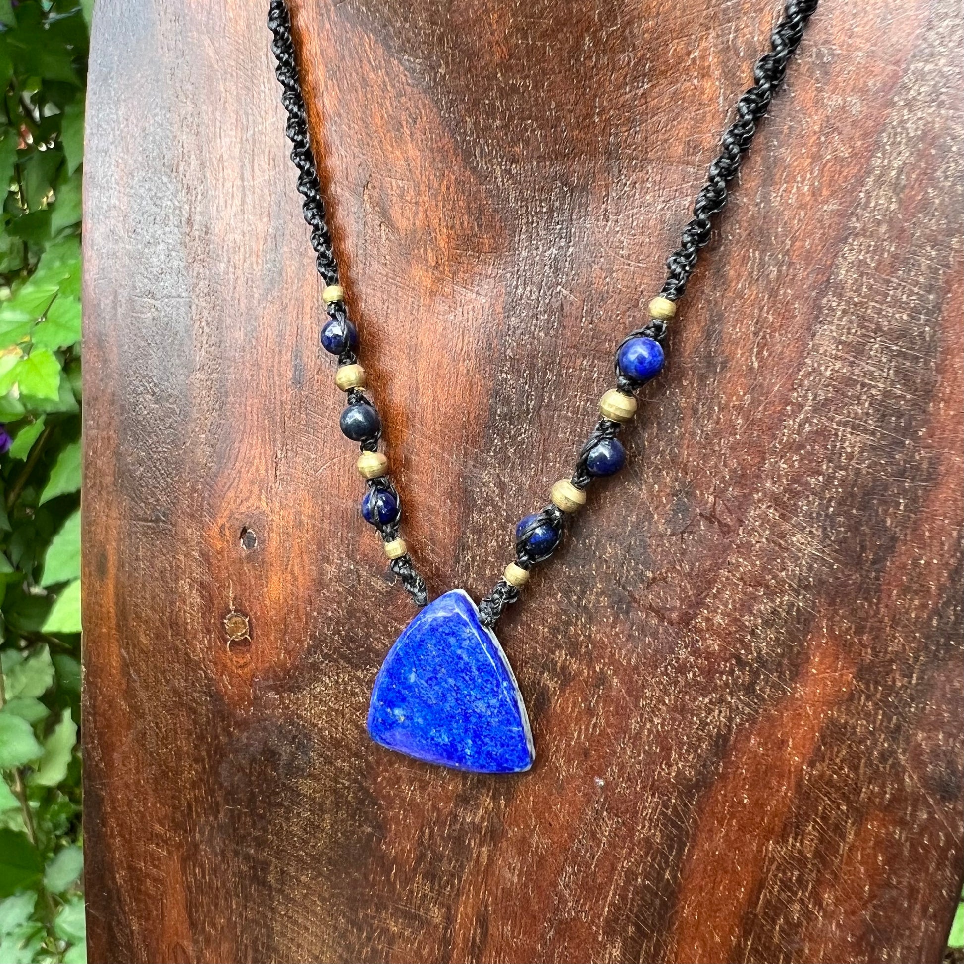 • The necklace ends have been finished with Lapis Lazuli and Brass beading