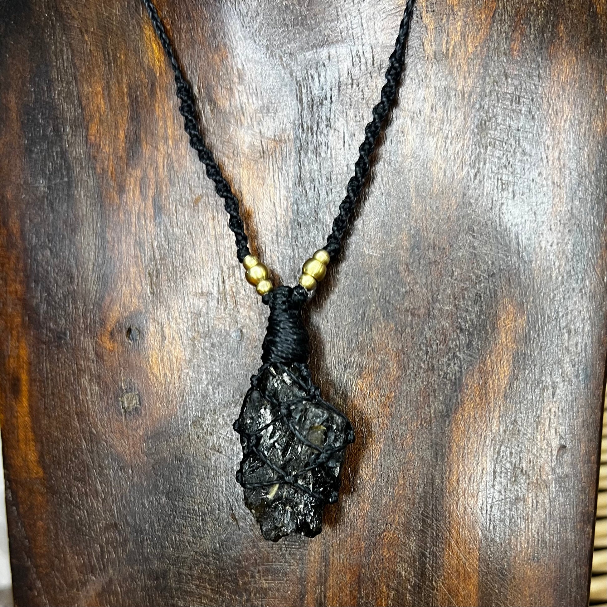 Darwinite Tektite Crystal Macrame Necklace (ii)