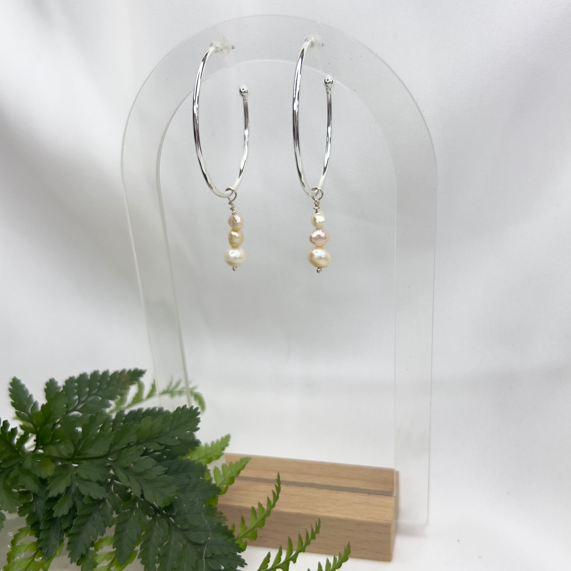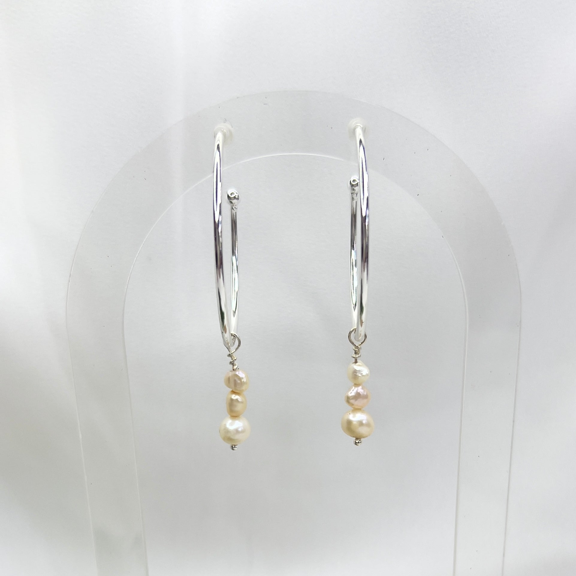 These earrings have been made to allow the pretty Pearl dangle to slide off so you can also wear your earrings as plain hoops.