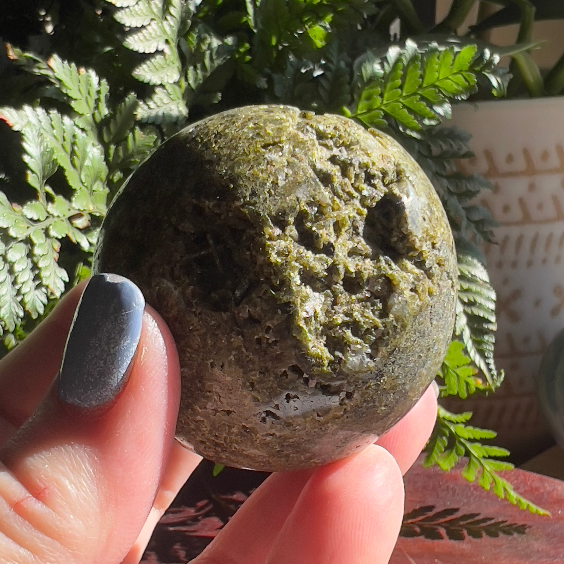 Epidote Sphere - Beautifully lush and dense with gorgeous natural druzy section.