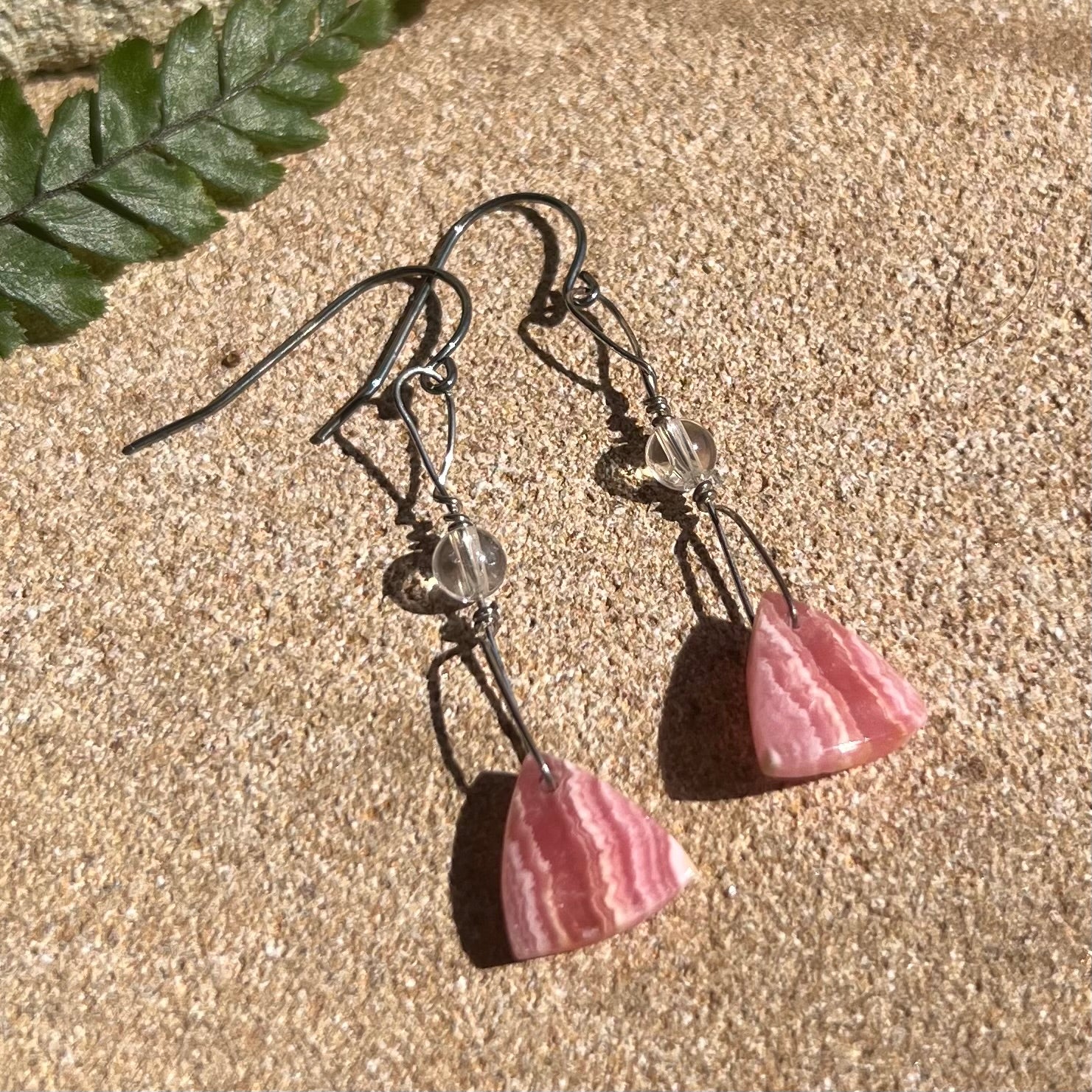 Faceted Rhodochrosite Silver Earrings: Self-expression ∙ Emotional Trauma Healing ∙ New Pathways