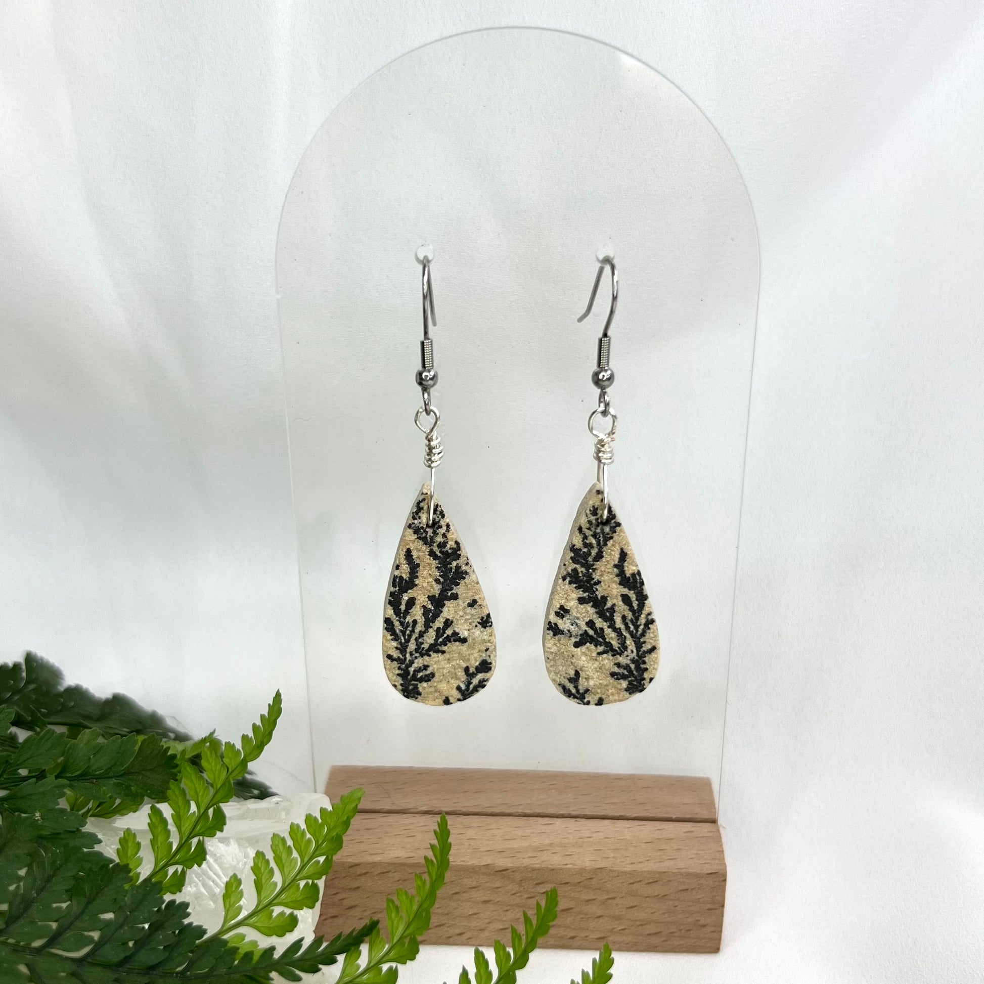 Fern-like Dendrite Limestone Earrings: Connection to Nature ∙ Transformation ∙ Harmony