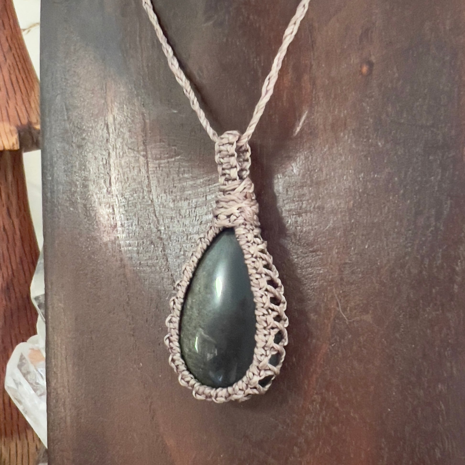 Golden Sheen Obsidian Crystal Macrame Necklace