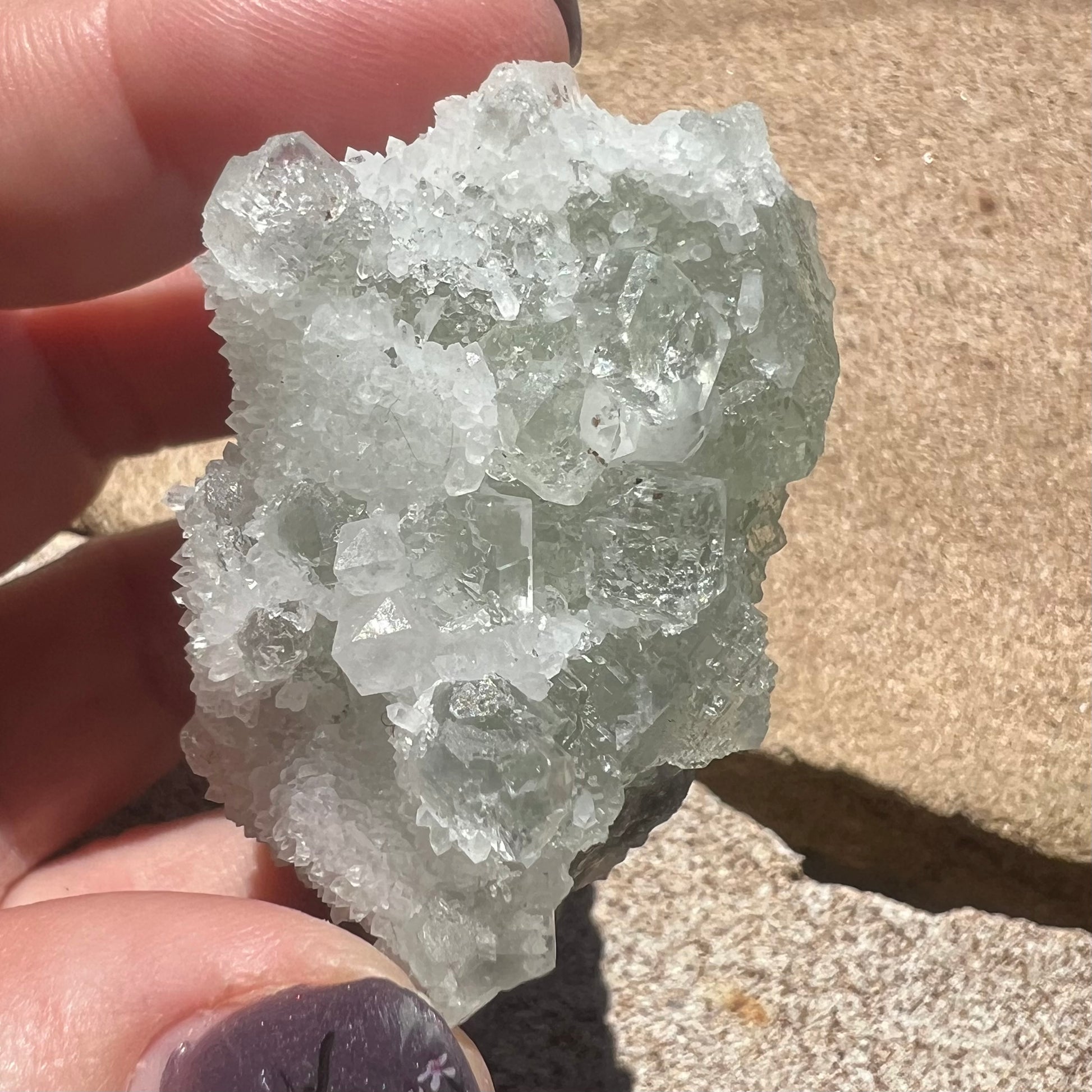 Green Octahedral Fluorite Specimen coated in Clear Quartz Druzy blanket - Fujian, China