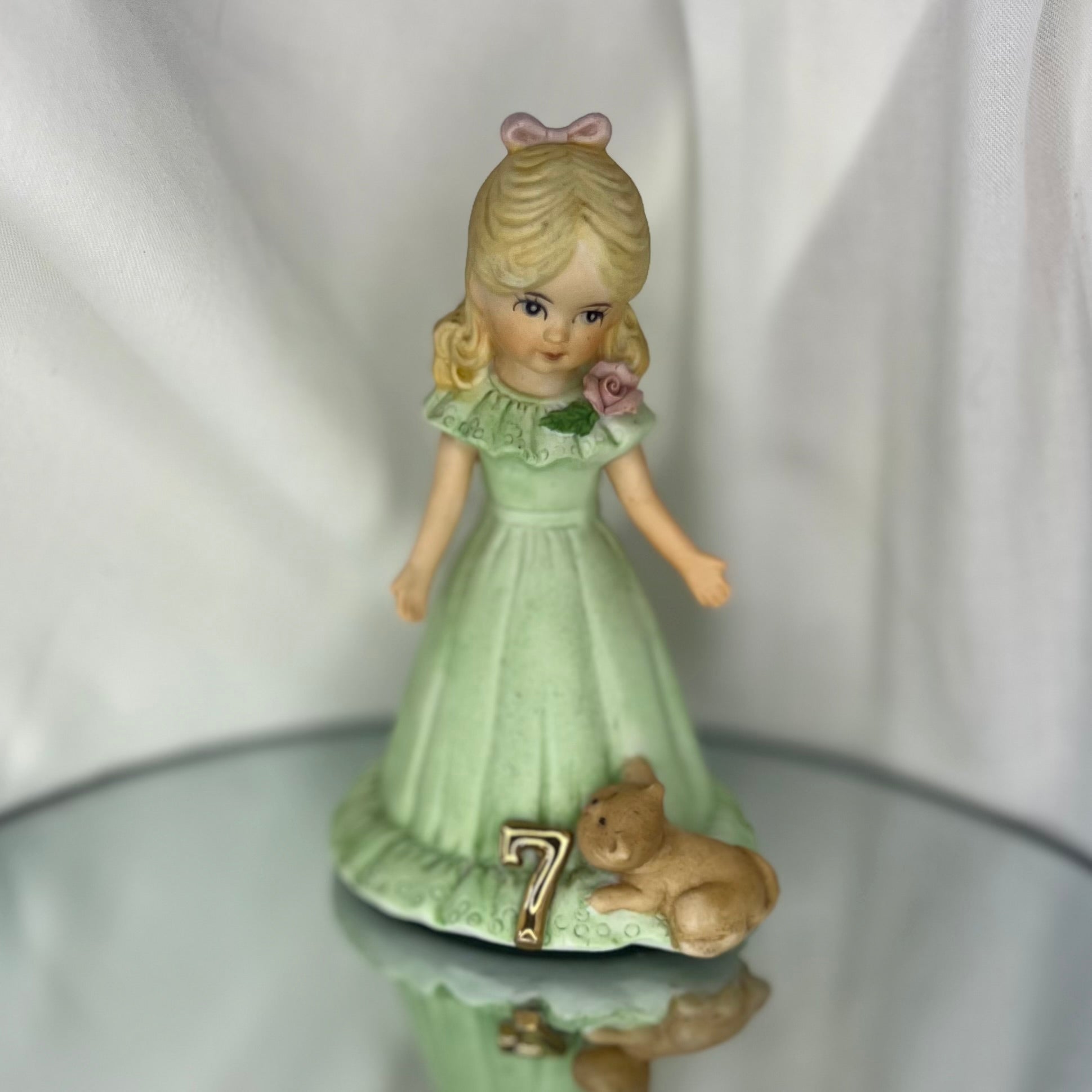 ‘Growing Up Birthday Girls' Porcelain Figurine | Vintage 7th Birthday Cake Topper | Blonde girl version | Enesco | 1984