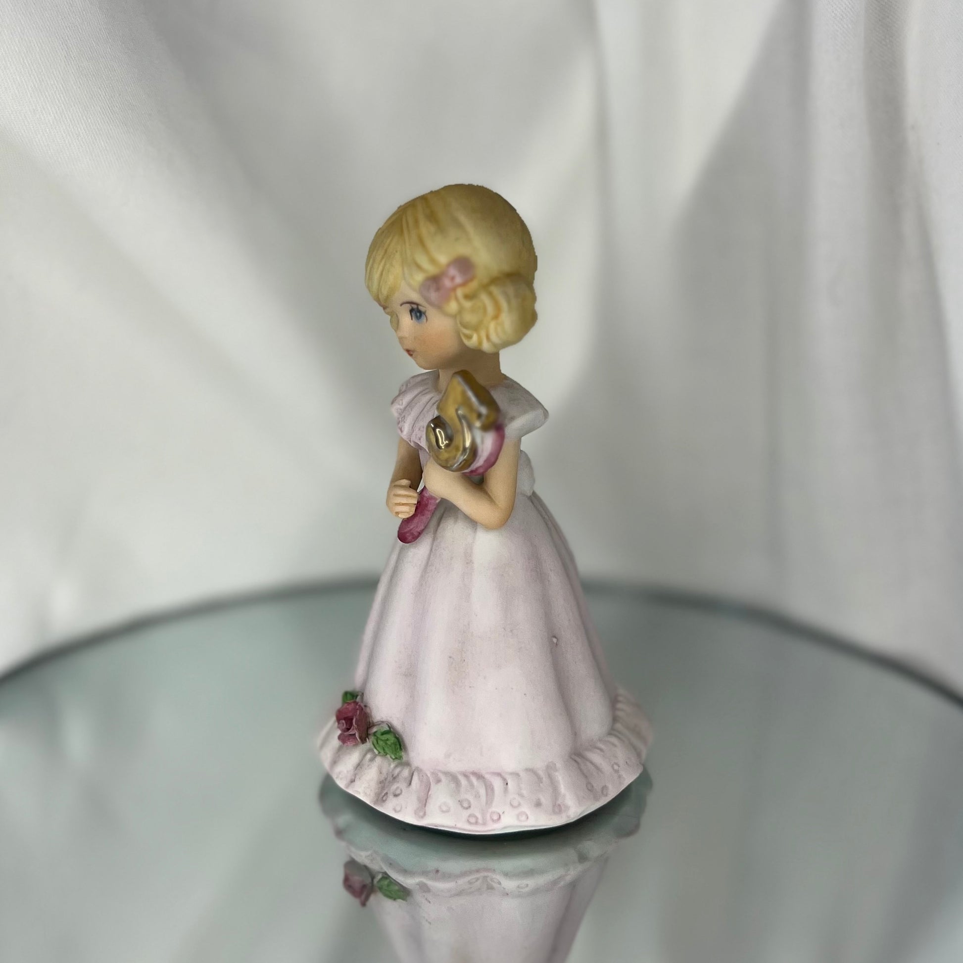 This is a beautiful 5th birthday keepsake that can also be used as a cake topper.Ā This figurine is from Enesco's early 1980's 'Growing Up Birthday Girls' collection made by Enesco and has been created with exquisite attention to detail in facial features, outfit and accessories.
