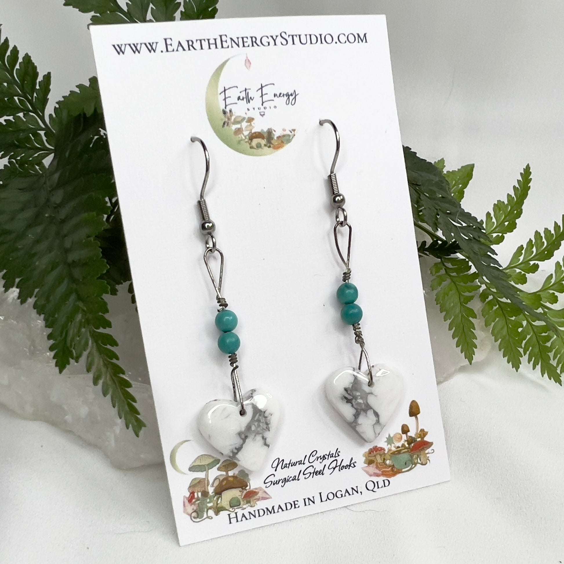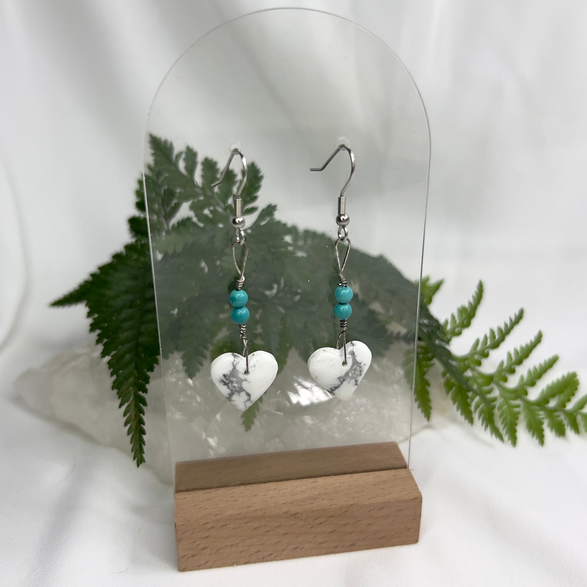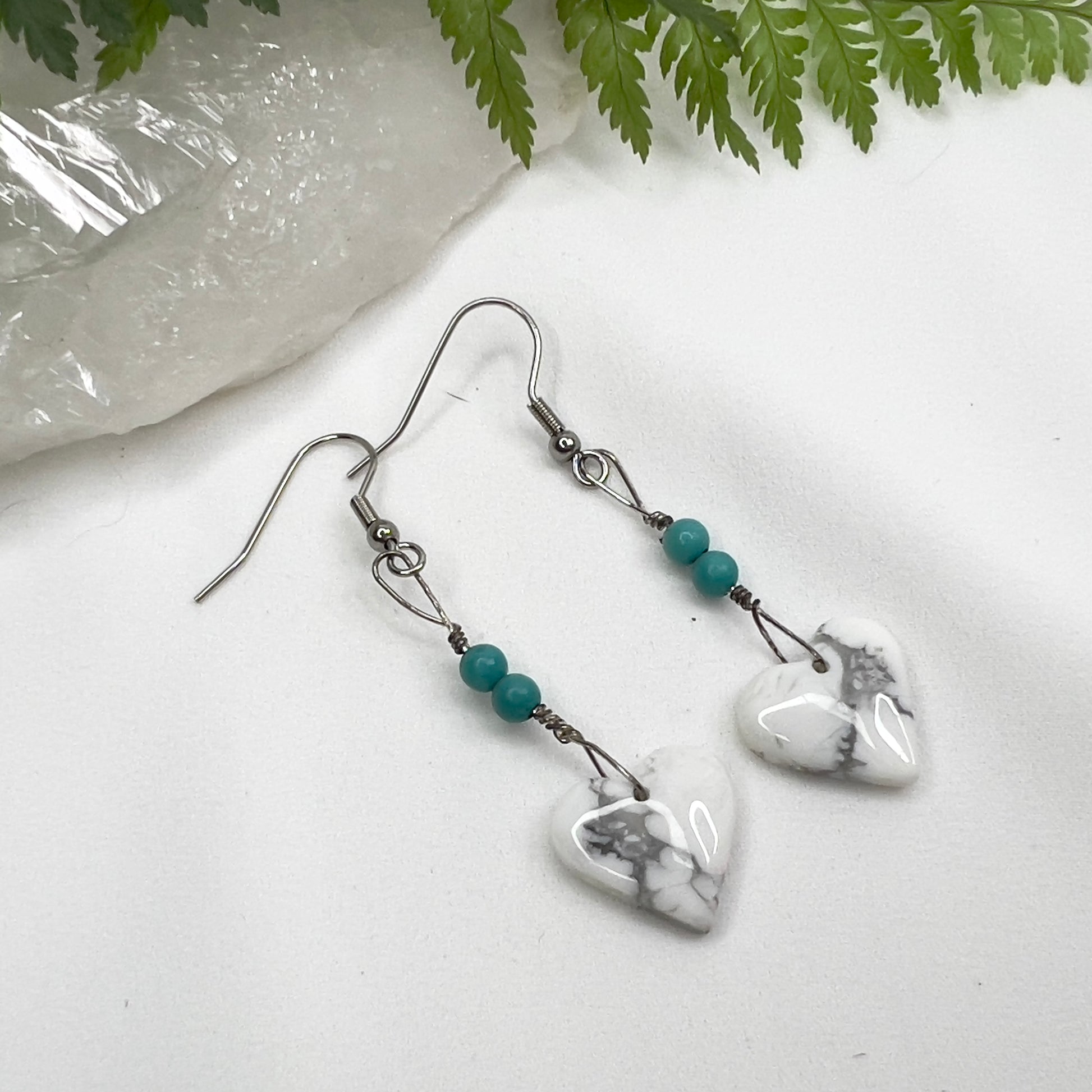 Howlite Heart Crystal Earrings: Patience ∙ Quiet the Mind ∙ Soothes Stress