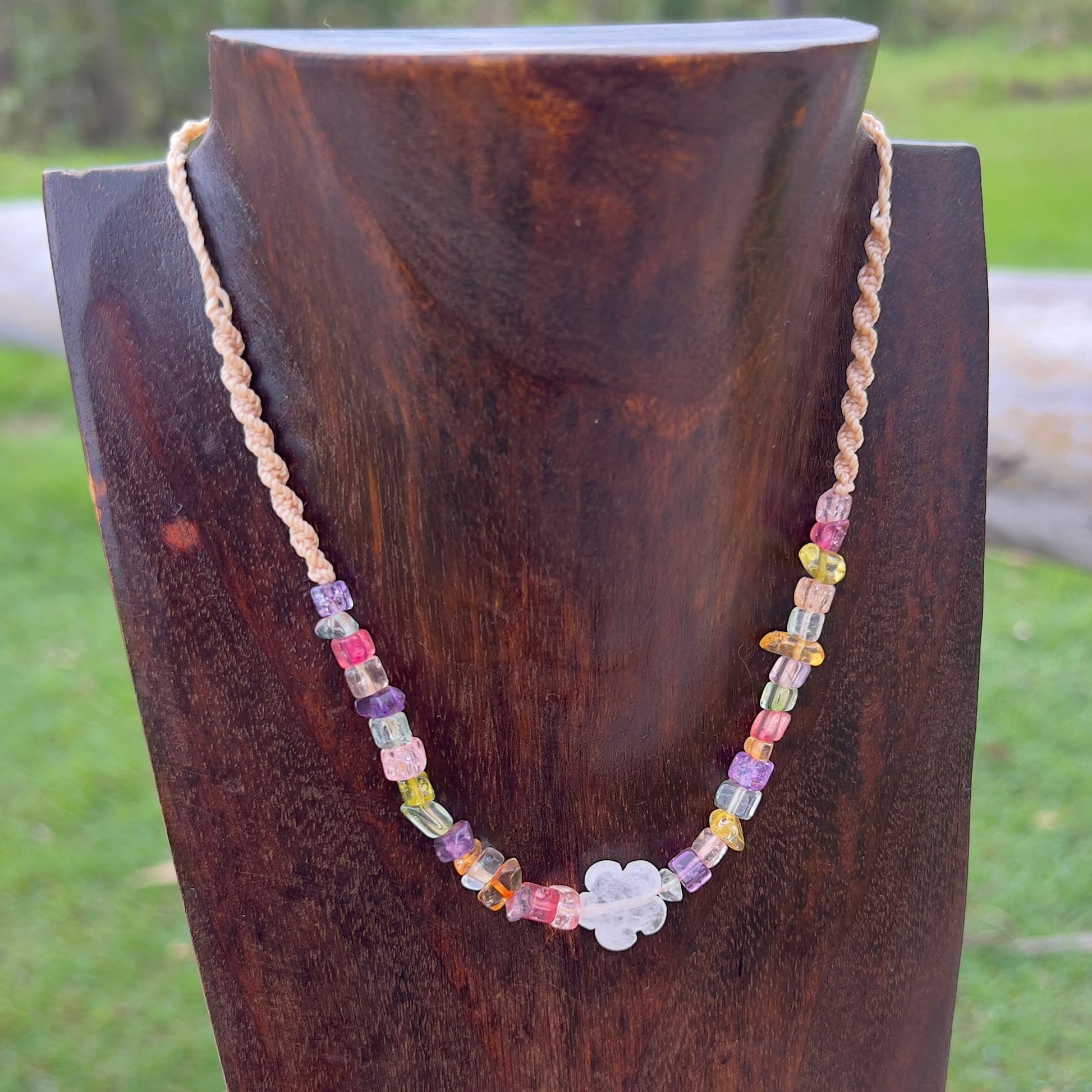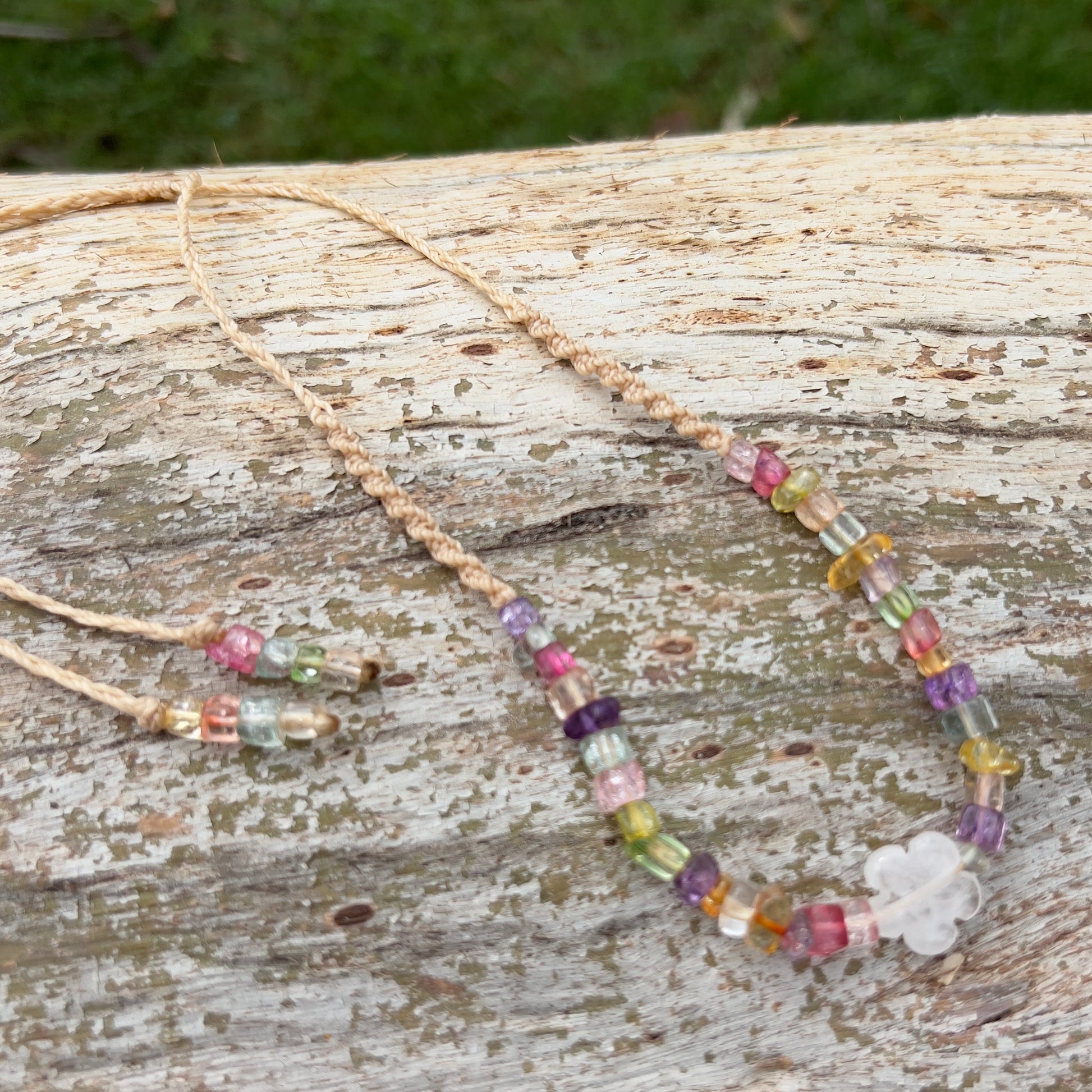 Clear Quartz with Vibrant Dyed Quartz Daisy Chain Macrame Necklace