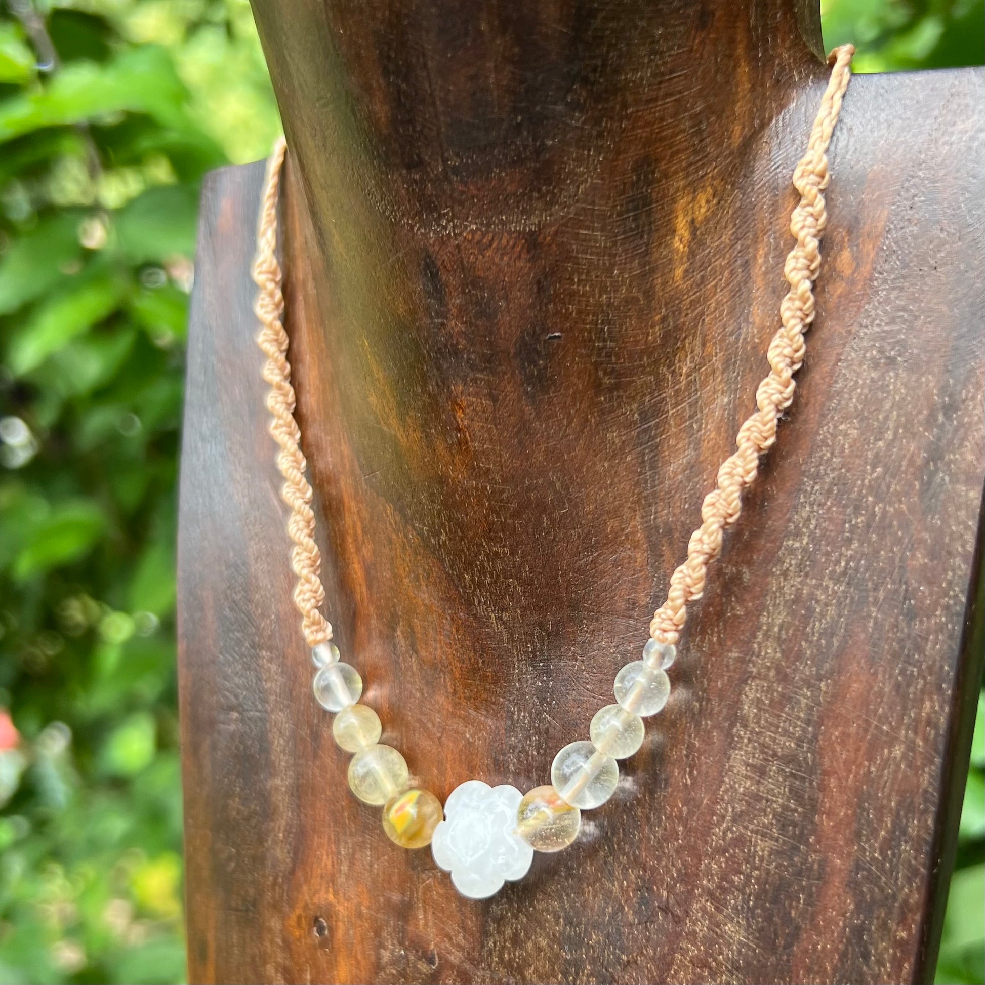 Clear Quartz Daisy Macrame Necklace with Indian Agate