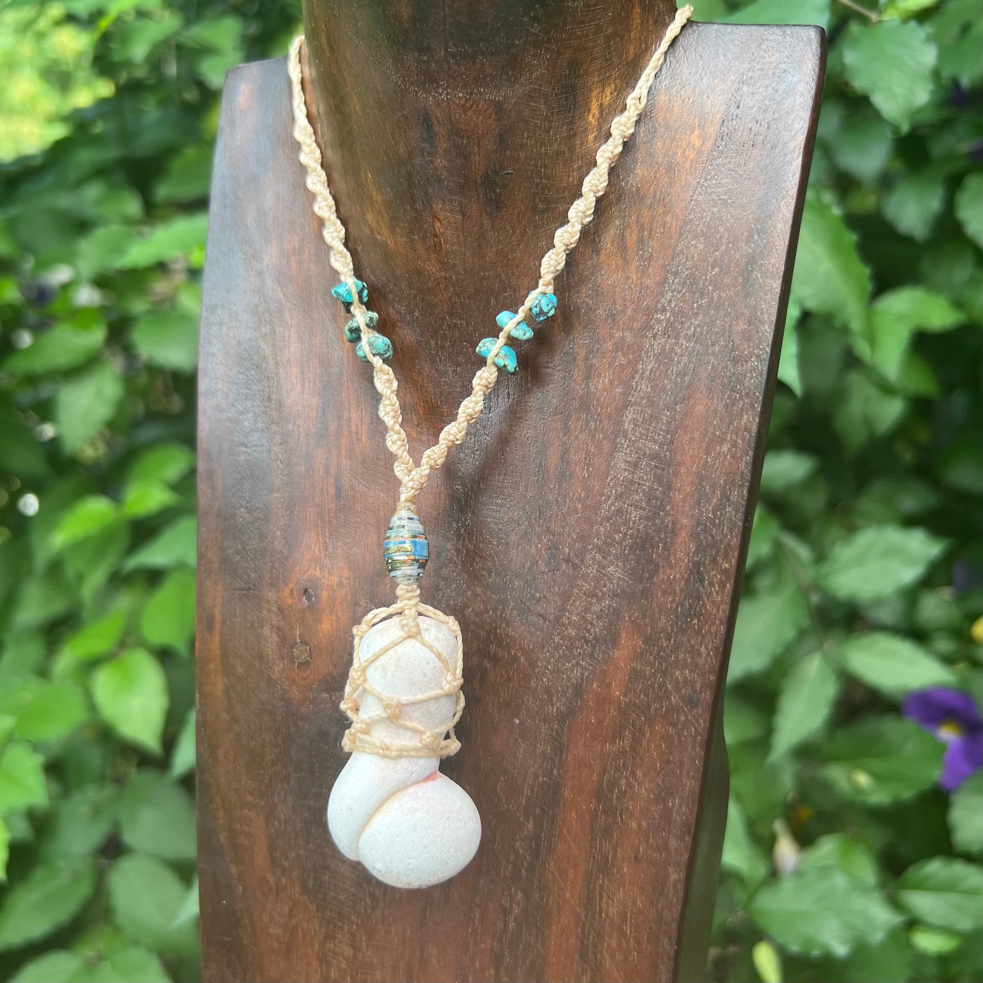 Menalite Fairy Stone with Howlite Macrame Crystal Necklace.