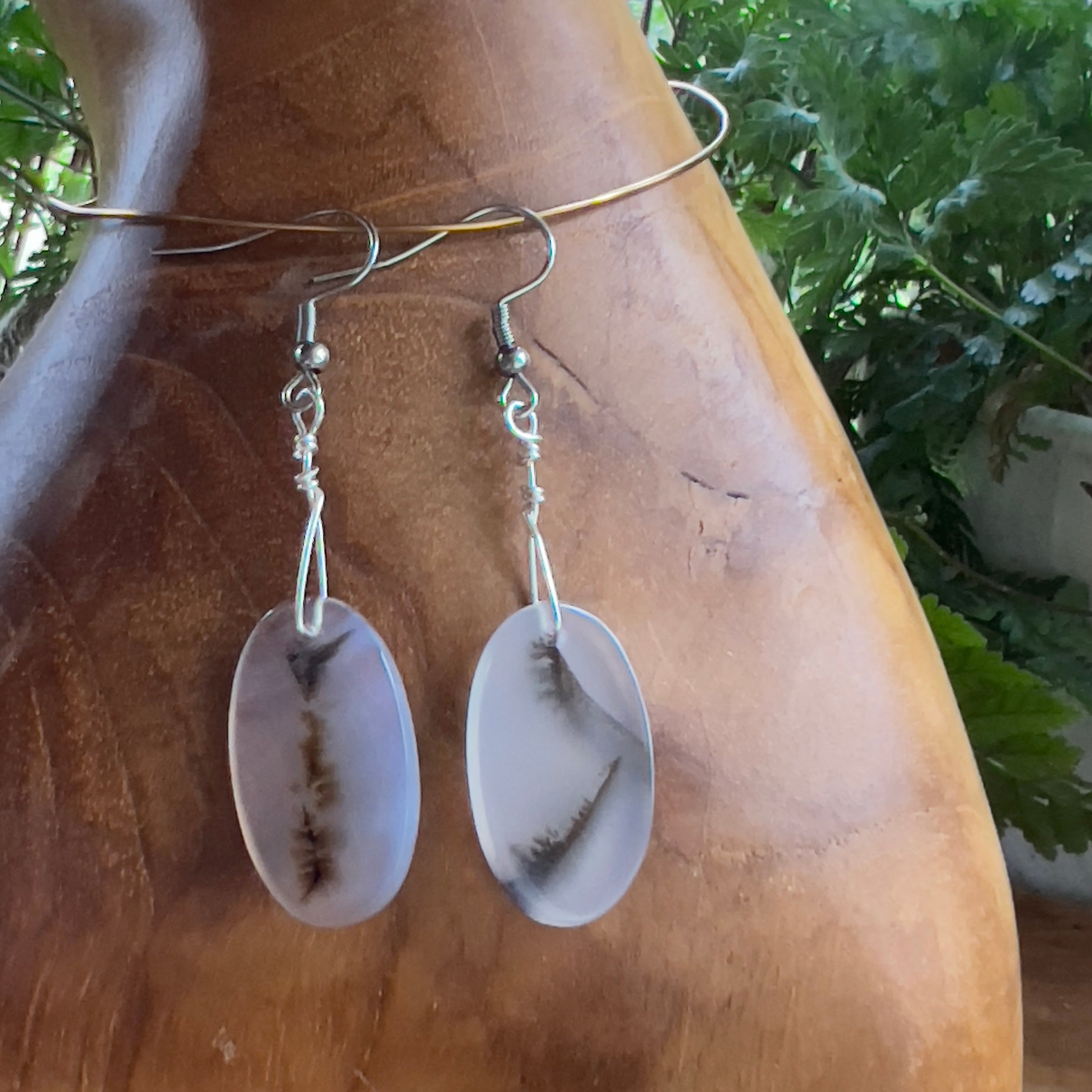 Natural Dendritic Picture Agate Earrings: Courage ∙ Connection to Nature ∙ Joy ∙ Friendships