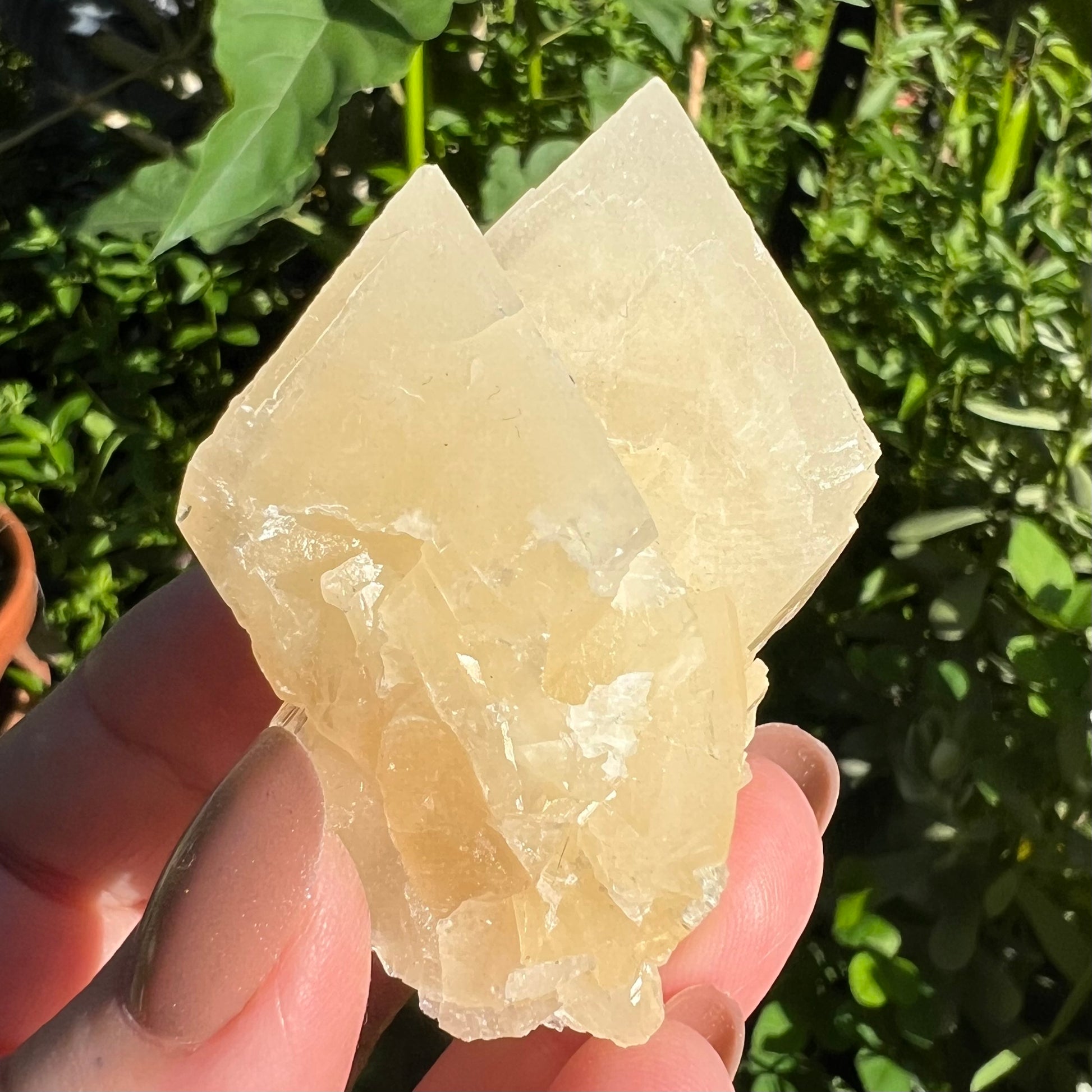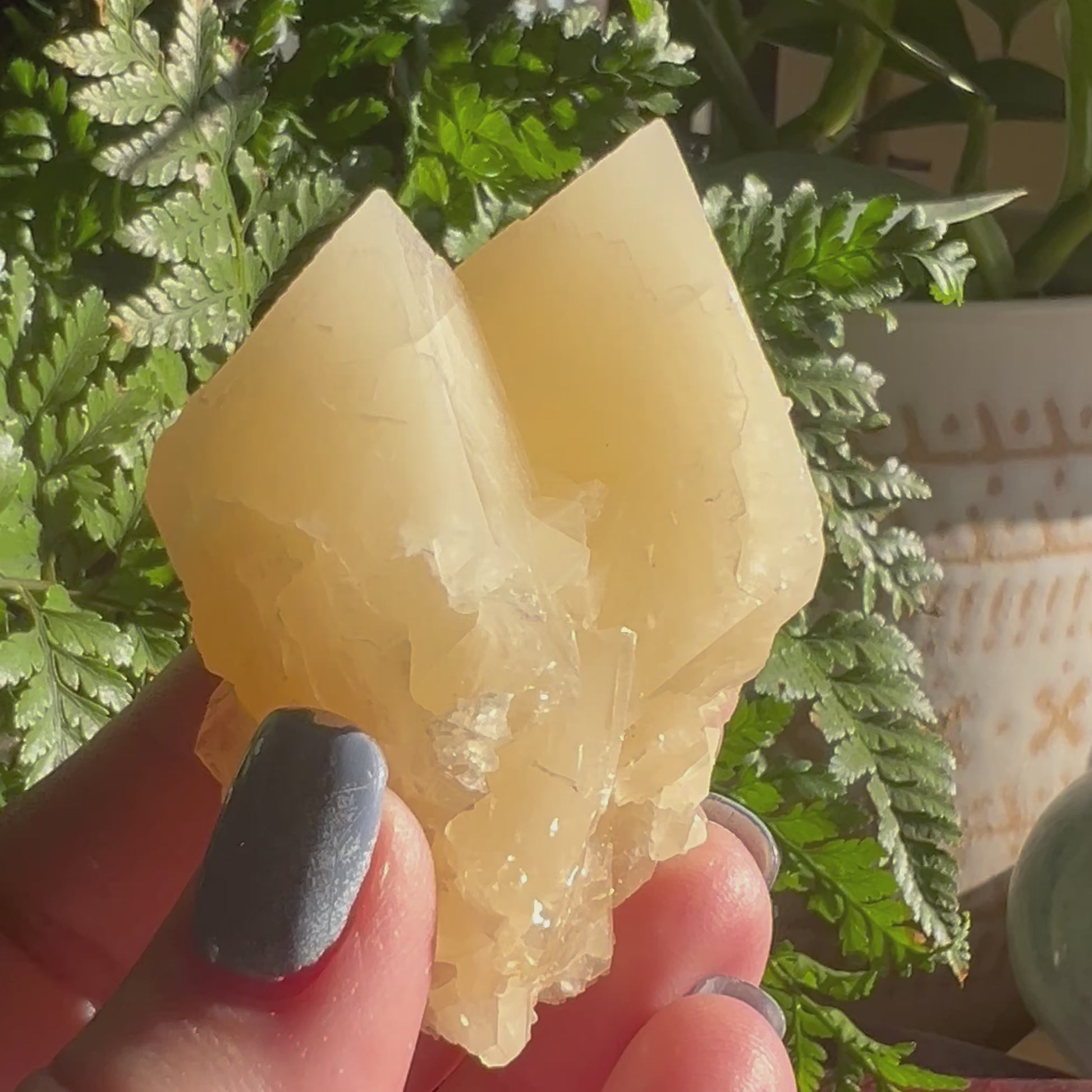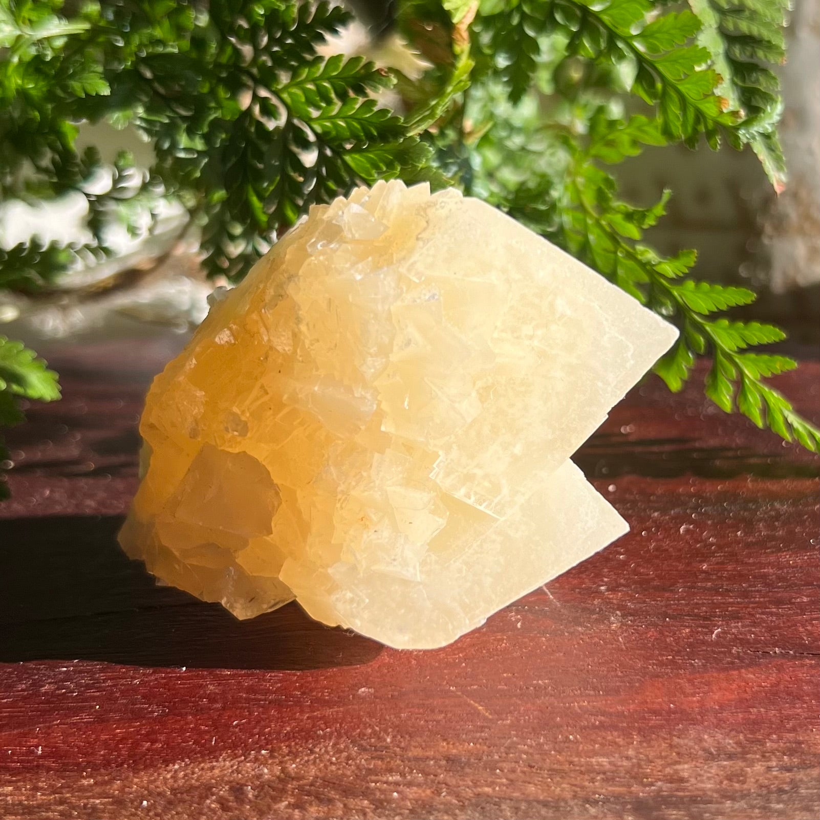 Orange Dog Tooth Calcite - A beautiful gentle orange toned Calcite specimen featuring two larger points surrounded by a base of smaller points.
