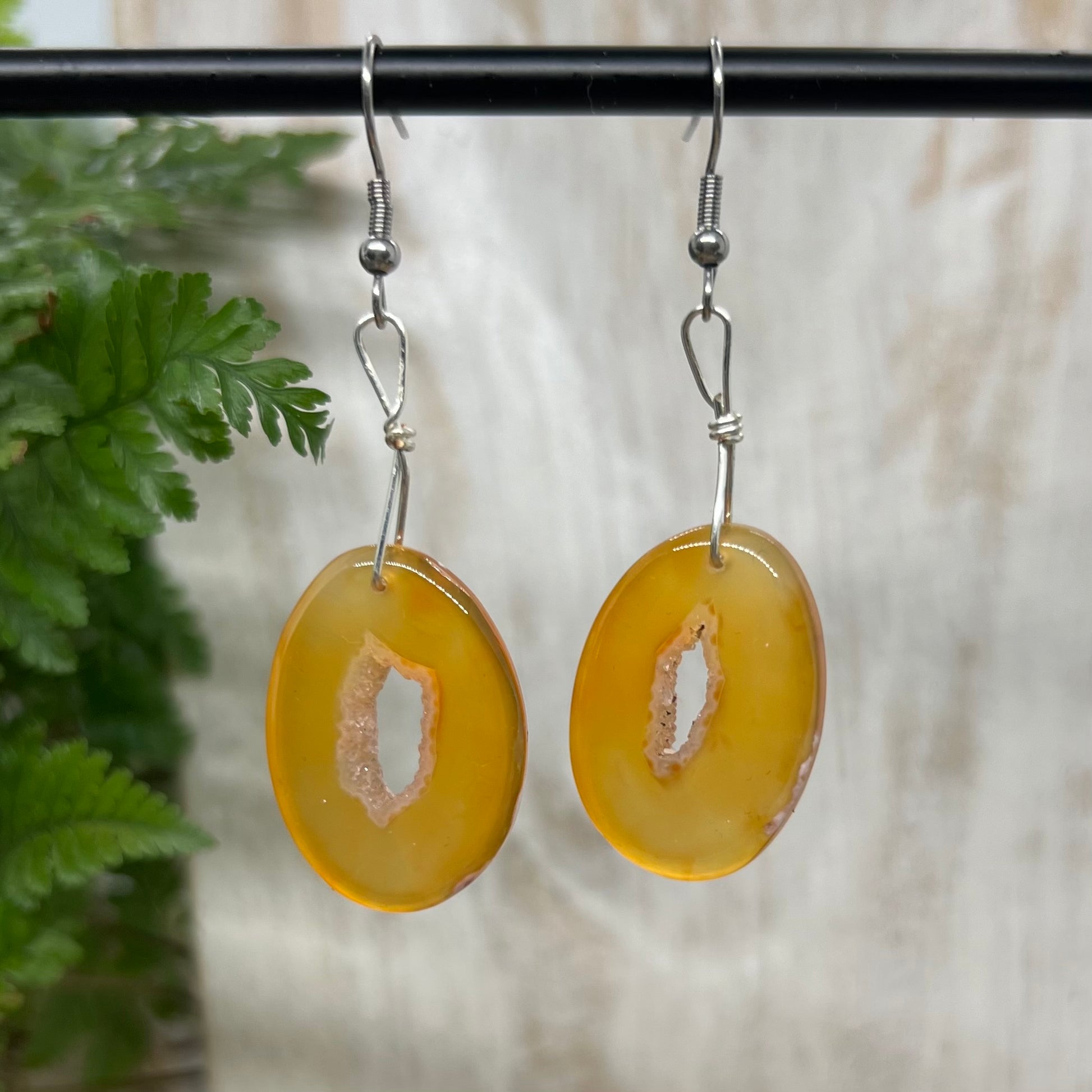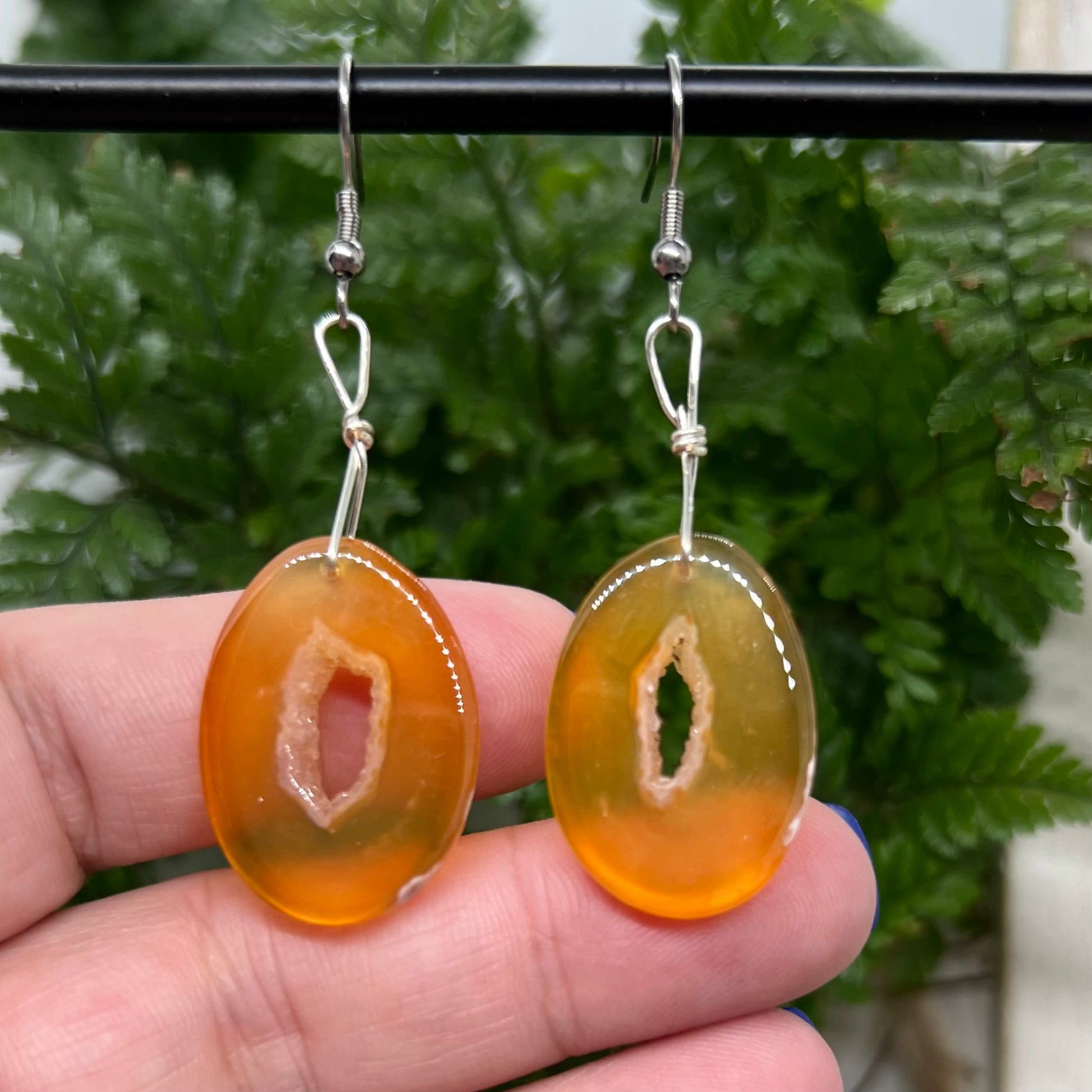Orange dyed Agate Crystal Earrings: Emotional Balance ∙ Confidence ∙ Friendship