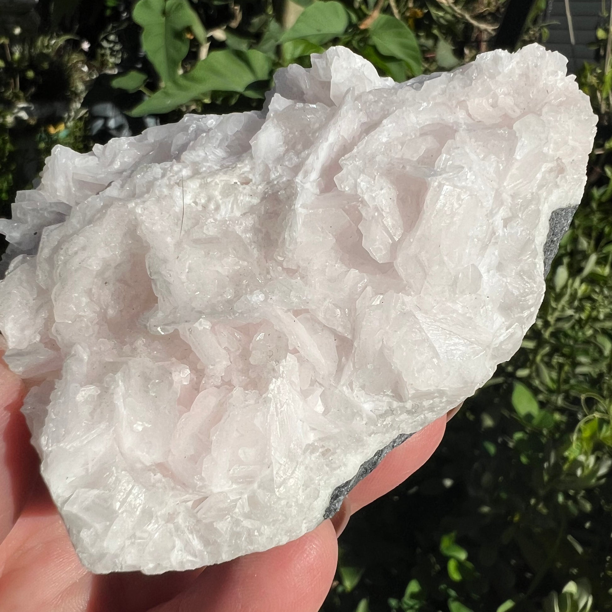 Pink 'Rose Petal' Calcite is a type of 'Mangano Calcite'. Manganese inclusions in the calcite create the gentle pink colouring, with it being best recognised for it's delicate, feminine petal-shaped appearance and vibrant UV-reaction. Under short-wave UV light, this specimen glows vibrant orange and under long-wave UV light it glows an incredible hot pink.