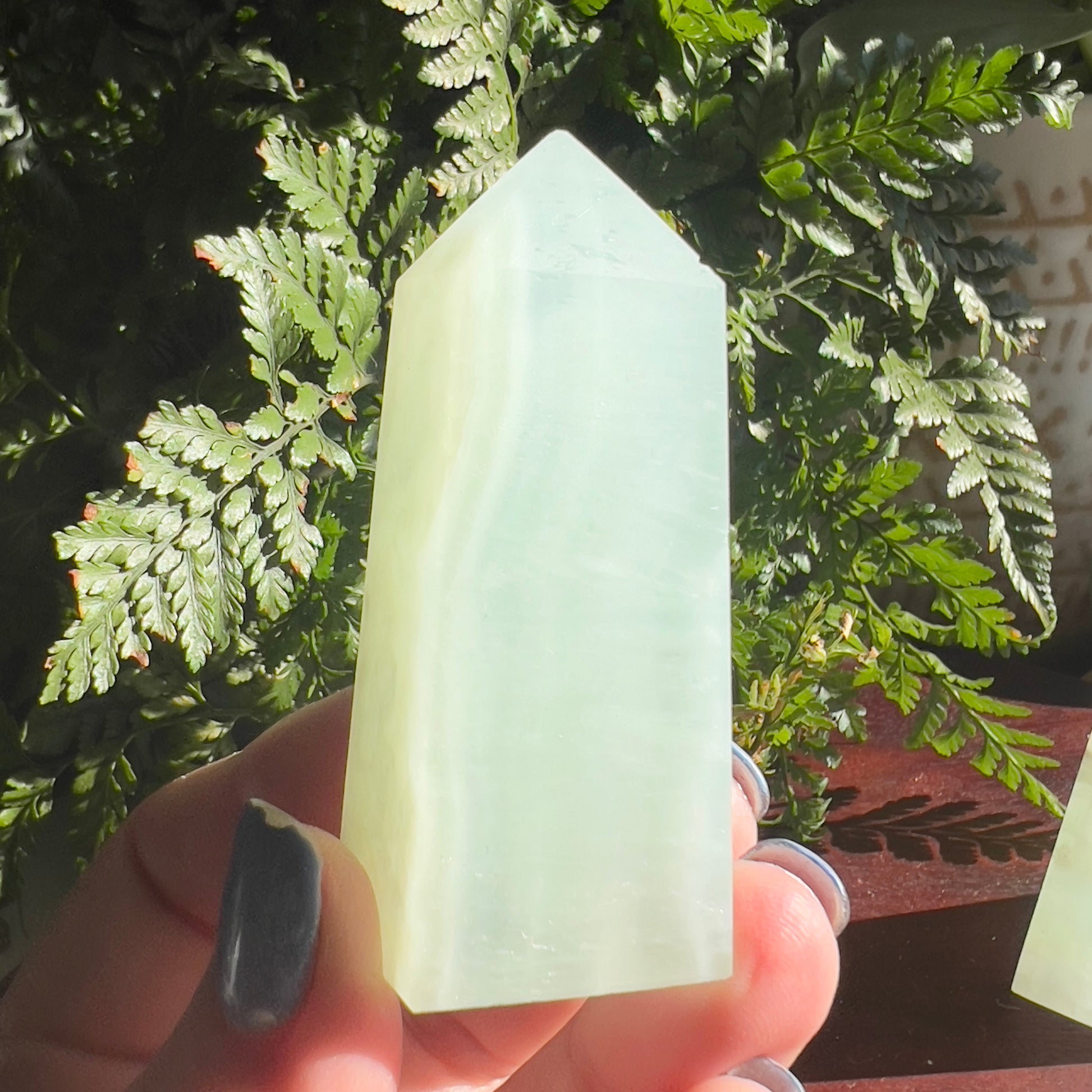 Pistachio Calcite Tower with lovely banding. I have a small hand-picked selection available and each is listed separately.