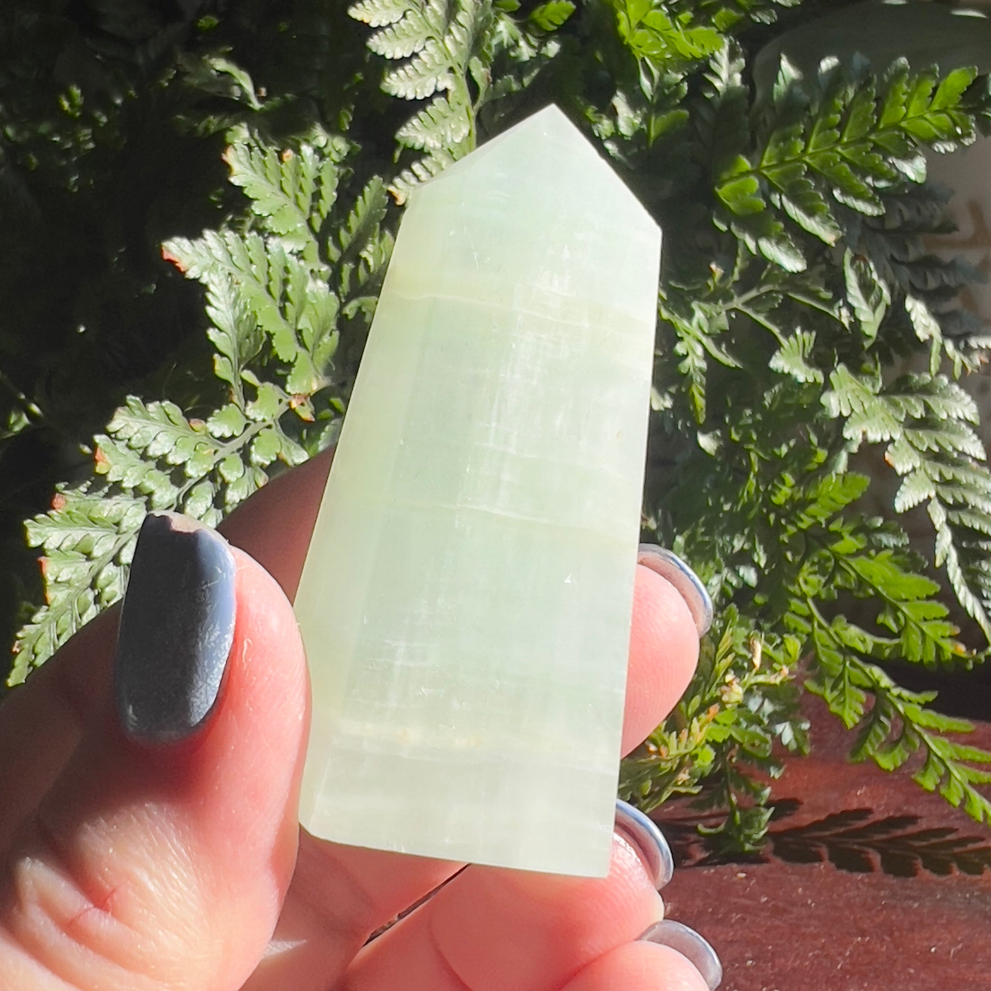 Pistachio Calcite Tower with lovely banding. I have a small hand-picked selection available and each is listed separately.