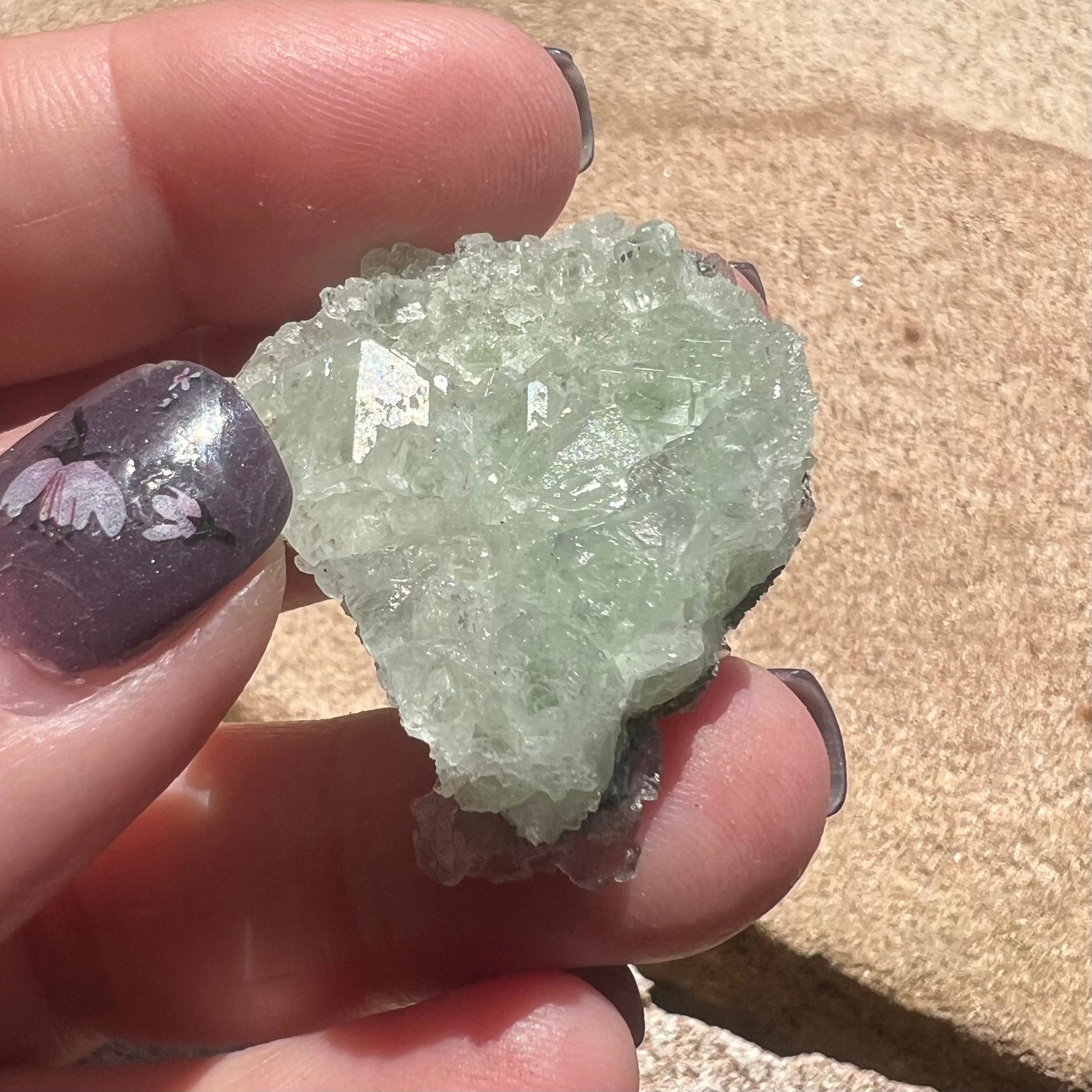 Pale green cubic Fluorite specimen with a coating of small Quartz points - Chenzhou, Hunan, China