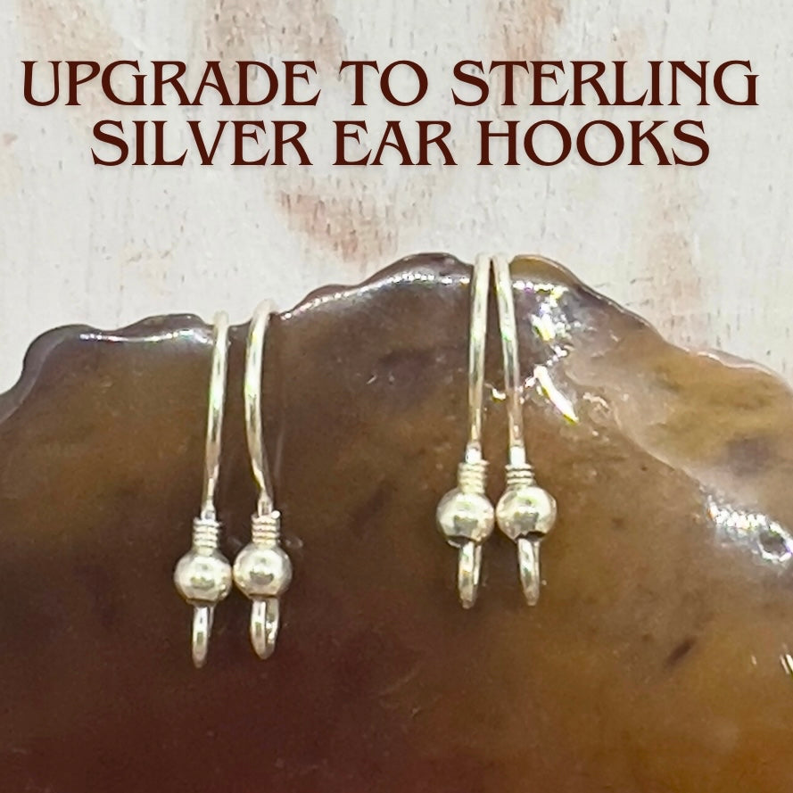 Our earrings are created with high quality Surgical Steel ear hooks (the same ones I wear comfortably myself). If your requirement or preference is for Sterling Silver ear hooks, please select this option to upgrade your earrings.
