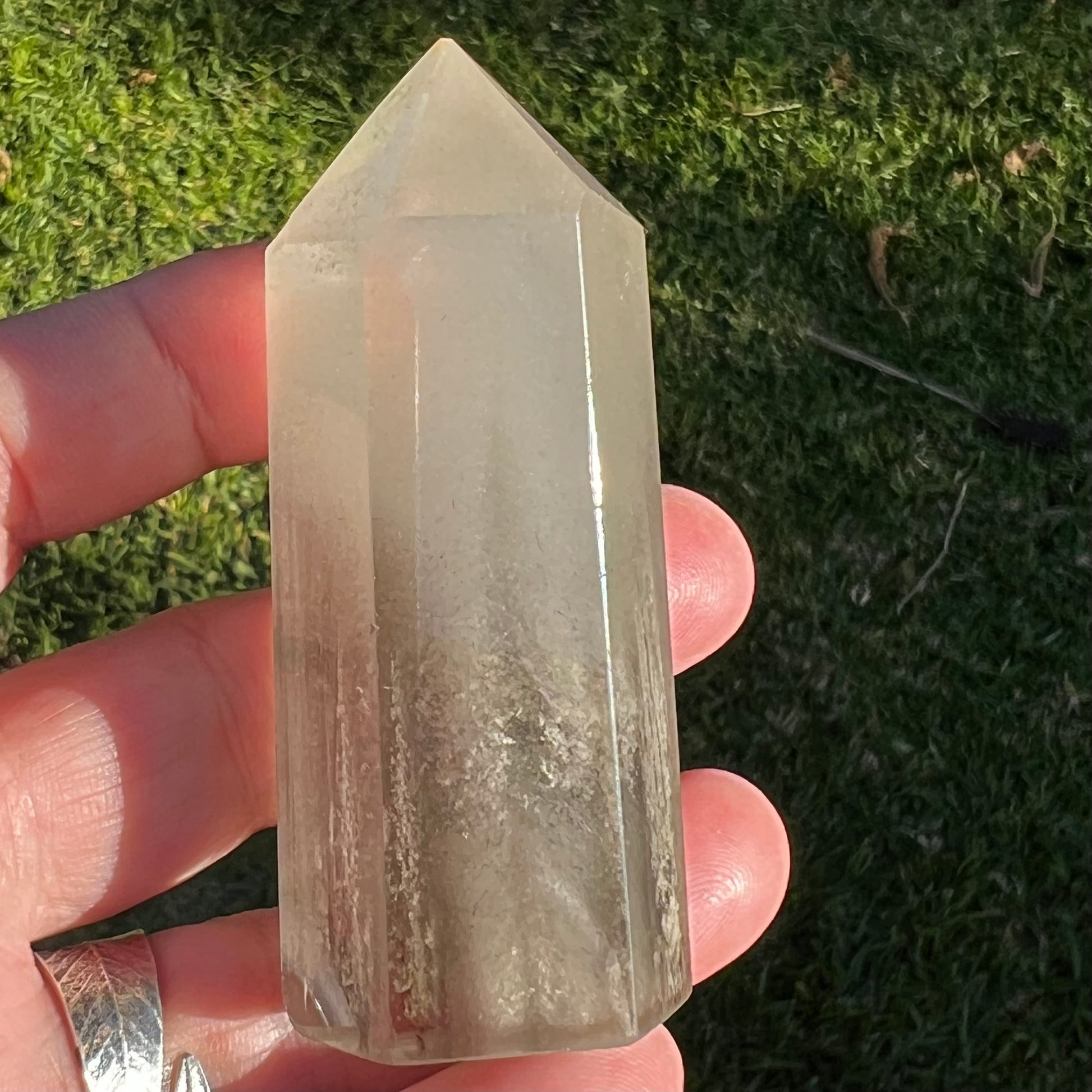 A beautiful specimen of Inclusion Quartz with clear Feldspar and Chlorite layers. The inclusions in this point almost looks like a misty forest with Phantom layers drifting over top - so very unique and beautiful.