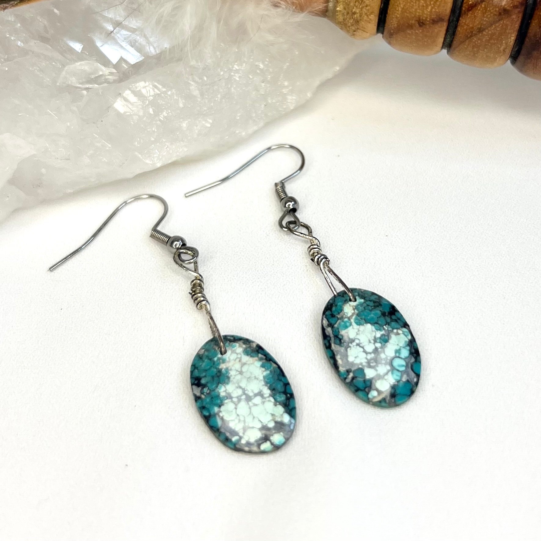 Elevate your style with these handcrafted earrings featuring genuine, faceted Tibetan Turquoise gemstones. Known for their calming energy and vivid blue-green hues, each stone is unique, showcasing natural veining and character. Set on hypoallergenic surgical steel hooks, these earrings are ideal for sensitive ears and everyday wear.