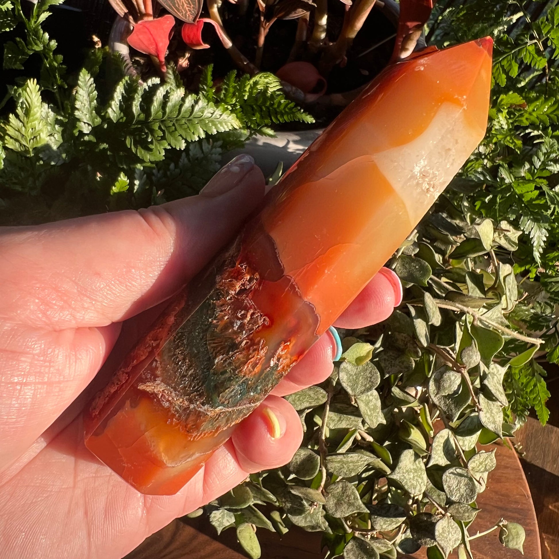 Carnelian Tower with raw section and gorgeous deep colouring.