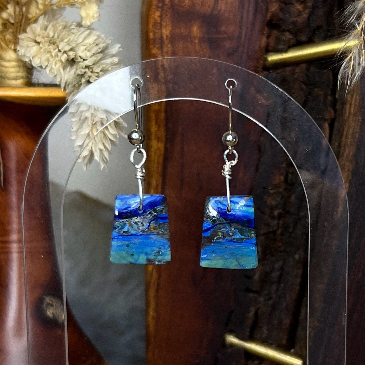 Elevate your look with these stunning, high-quality Azurite crystal earrings. Featuring unique, vibrant natural stones and set on durable, hypoallergenic surgical steel kidney ear hooks for all-day comfort.