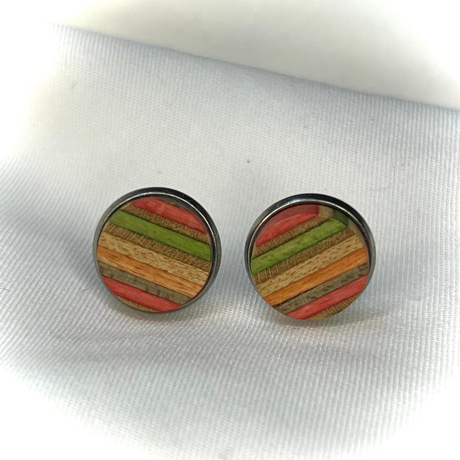 Upcycled Skateboard Timber Stud Earrings | Red•Green•Orange•Grey•Wood | by Addy’s Earrings