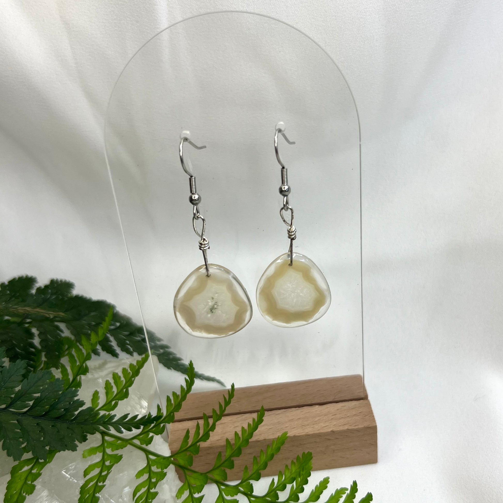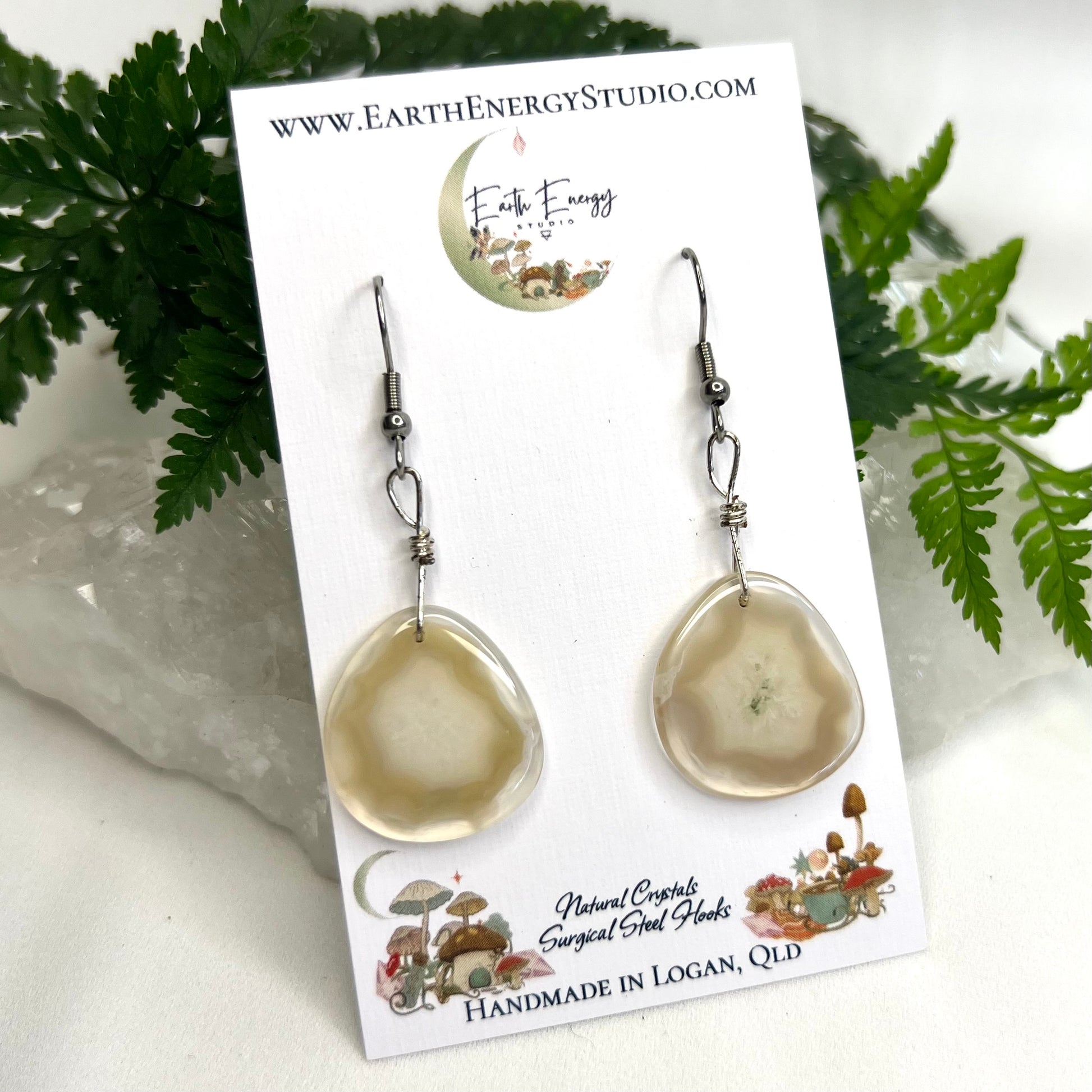 White Agate Slice Crystal Earrings: Emotional Balance ∙ Confidence ∙ Friendship